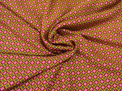 Pink & Yellow Diamond Digitally Printed Butter Crepe Fabric