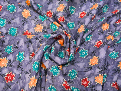 Purple Floral Digitally Printed Butter Crepe Fabric