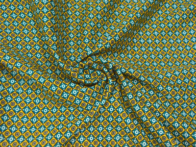 Yellow & Green Diamond Digitally Printed Butter Crepe Fabric