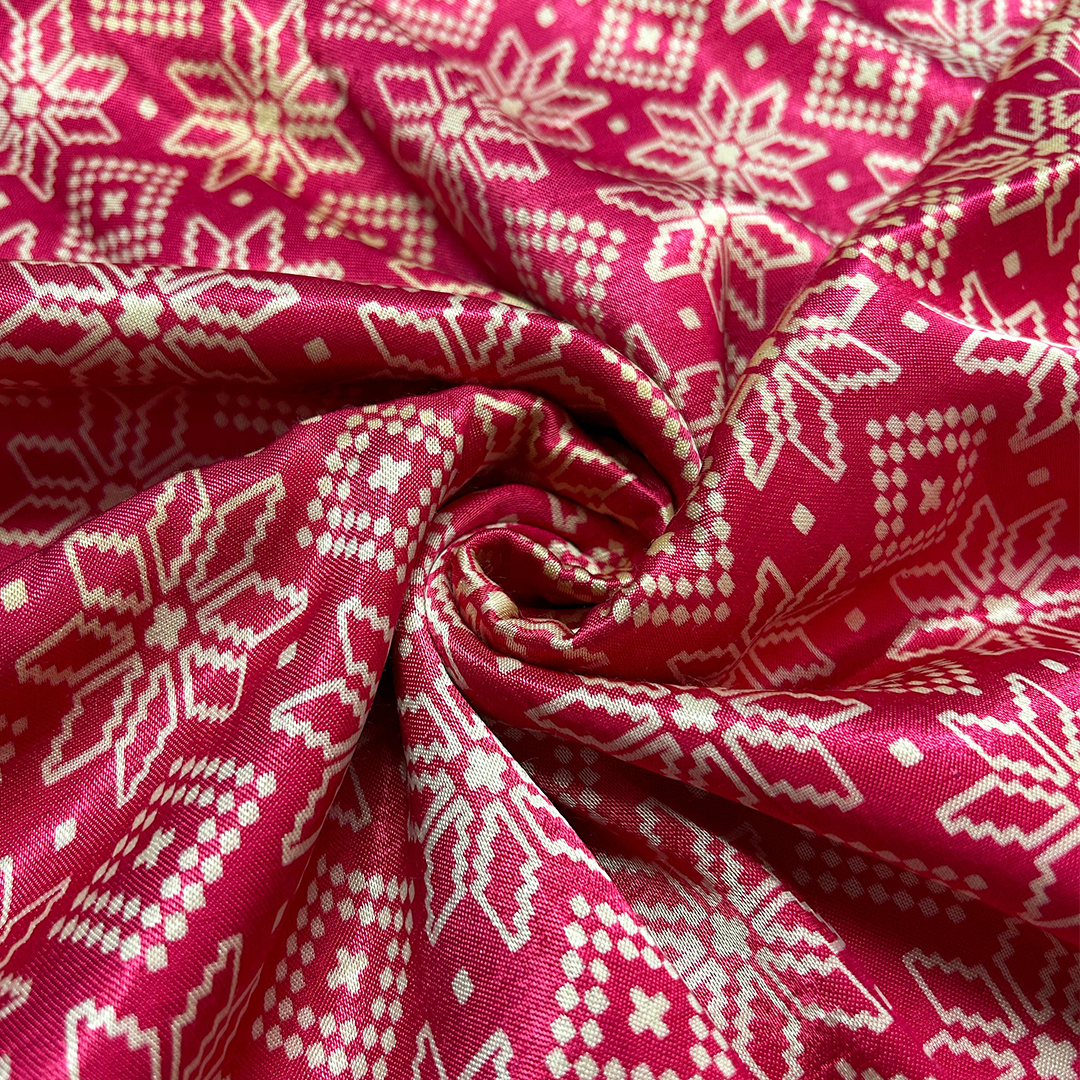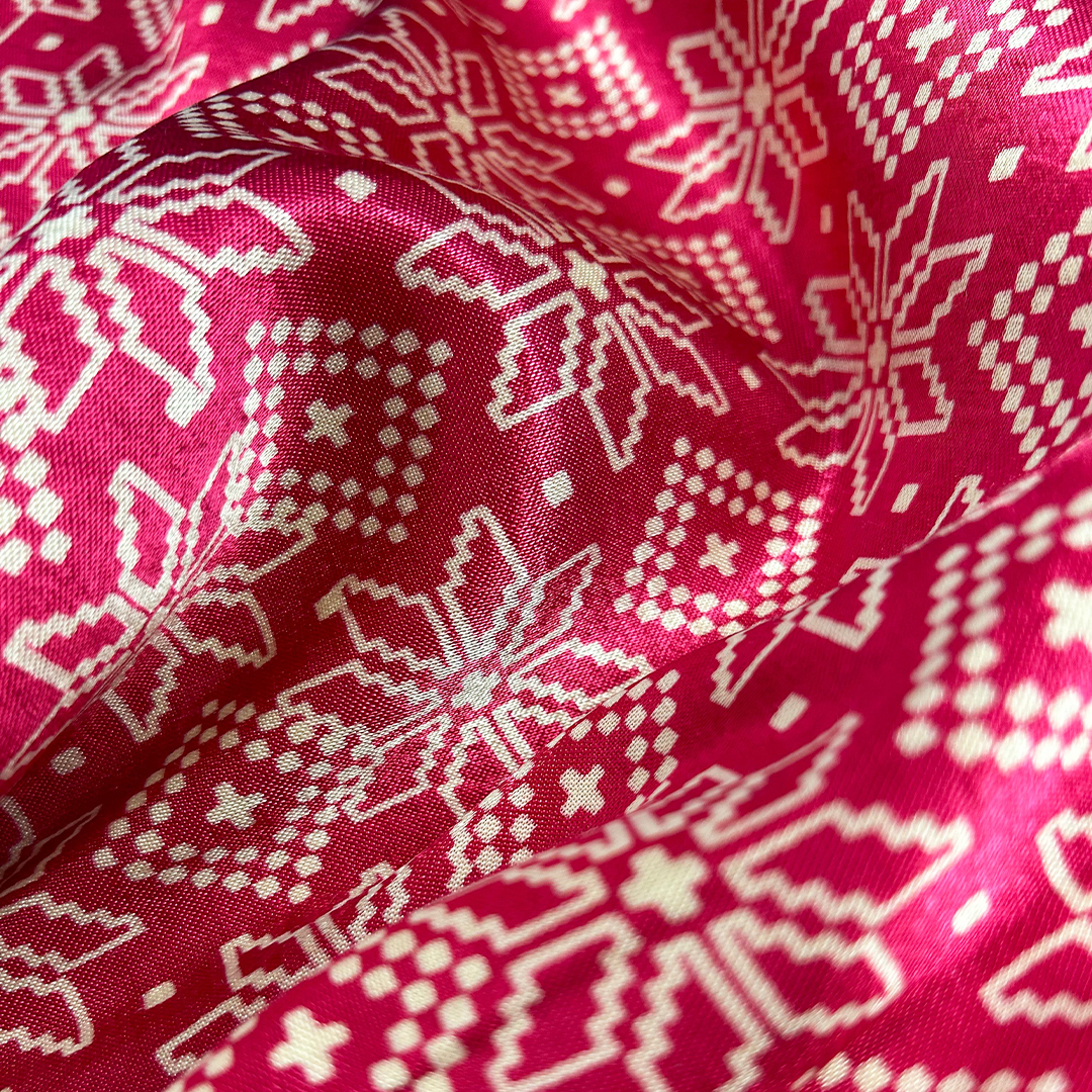 हॉट पिंक और क्रीम पारंपरिक पटोला मुद्रित मशरू सिल्क कपड़ा