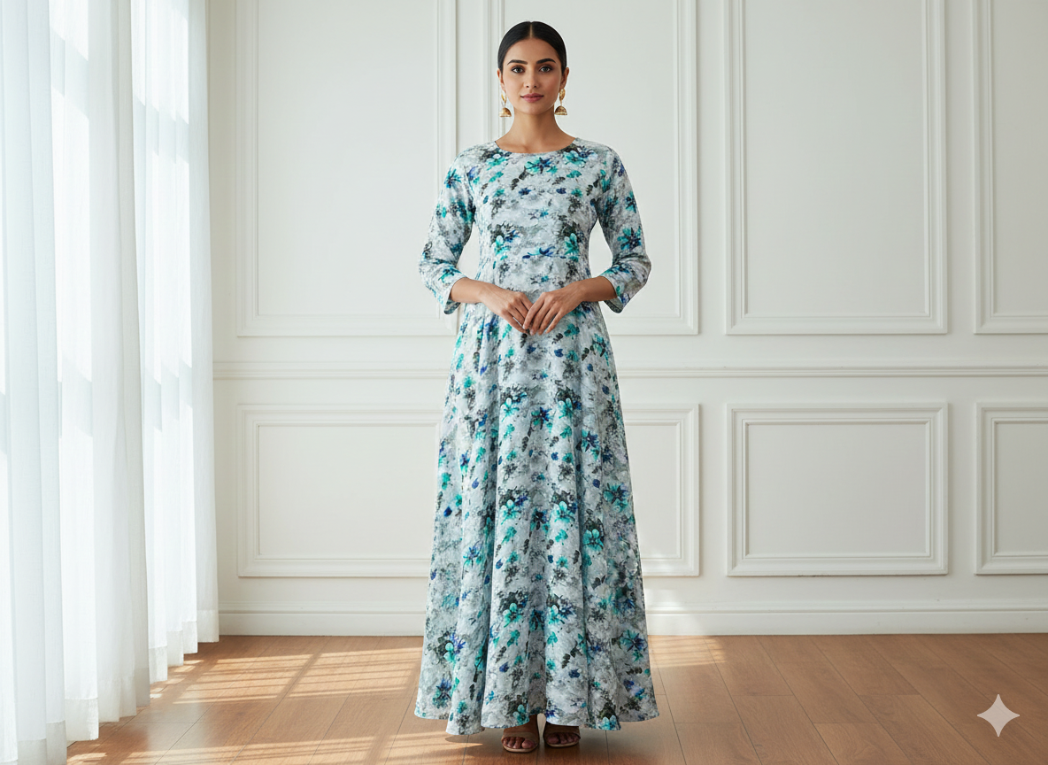 प्रीमियम बटर क्रेप फ़ैब्रिक एक शानदार, उच्च गुणवत्ता वाला कपड़ा है जो अपनी मुलायम, चिकनी बनावट और सुरुचिपूर्ण ड्रेप के लिए जाना जाता है। इस कपड़े की एक नाजुक, थोड़ी झुर्रीदार सतह है, जो इसे एक संयमित लेकिन परिष्कृत रूप देती है। इस कपड़े पर लागू डिजिटल प्रिंटिंग तकनीक जीवंत, जटिल पैटर्न और तेज स्पष्टता के साथ डिजाइन की अनुमति देती है, जो इसे ड्रेस, स्कर्ट, ब्लाउज और यहां तक कि स्कार्फ जैसे फैशन-फॉरवर्ड परिधानों के लिए आदर्श बनाती है।