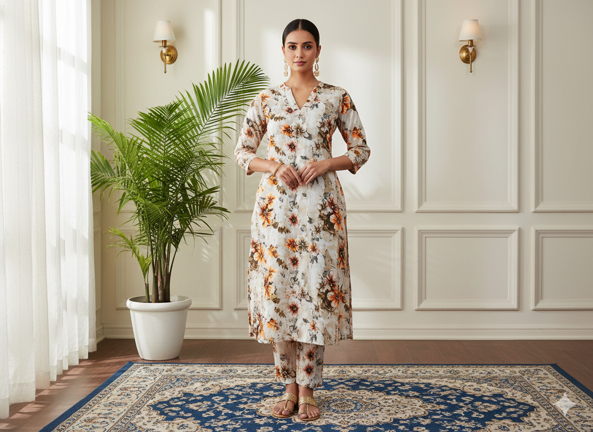 प्रीमियम बटर क्रेप फ़ैब्रिक एक शानदार, उच्च गुणवत्ता वाला कपड़ा है जो अपनी मुलायम, चिकनी बनावट और सुरुचिपूर्ण ड्रेप के लिए जाना जाता है। इस कपड़े की एक नाजुक, थोड़ी झुर्रीदार सतह है, जो इसे एक संयमित लेकिन परिष्कृत रूप देती है। इस कपड़े पर लागू डिजिटल प्रिंटिंग तकनीक जीवंत, जटिल पैटर्न और तेज स्पष्टता के साथ डिजाइन की अनुमति देती है, जो इसे ड्रेस, स्कर्ट, ब्लाउज और यहां तक कि स्कार्फ जैसे फैशन-फॉरवर्ड परिधानों के लिए आदर्श बनाती है।