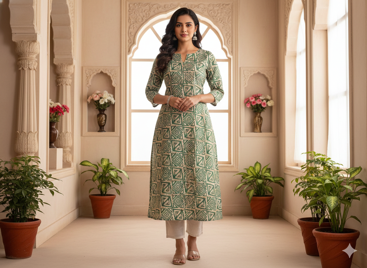 डिजिटल प्रिंटेड सब कॉटन फ़ैब्रिक पारंपरिक कॉटन की प्राकृतिक कोमलता और डिजिटल प्रिंट के आधुनिक स्वभाव का मिश्रण है। यह फ़ैब्रिक एक चिकनी, सांस लेने योग्य बनावट प्रदान करता है, जो इसे ब्लाउज़, ट्यूनिक्स और स्कर्ट जैसे स्टाइलिश, आरामदायक परिधान बनाने के लिए एकदम सही बनाता है।