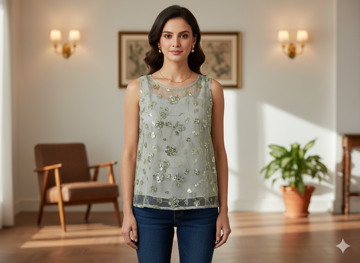 सेक्विन कढ़ाई वाला ऑर्गेना कपड़ा एक शानदार और सुरुचिपूर्ण कपड़ा है, जो ग्लैमरस और आकर्षक डिज़ाइन बनाने के लिए एकदम सही है। पारदर्शी, हल्के ऑर्गेना से बने इस कपड़े में जटिल कढ़ाई है जो चमकदार सेक्विन से सजी है, जो गहराई और चमक जोड़ती है।