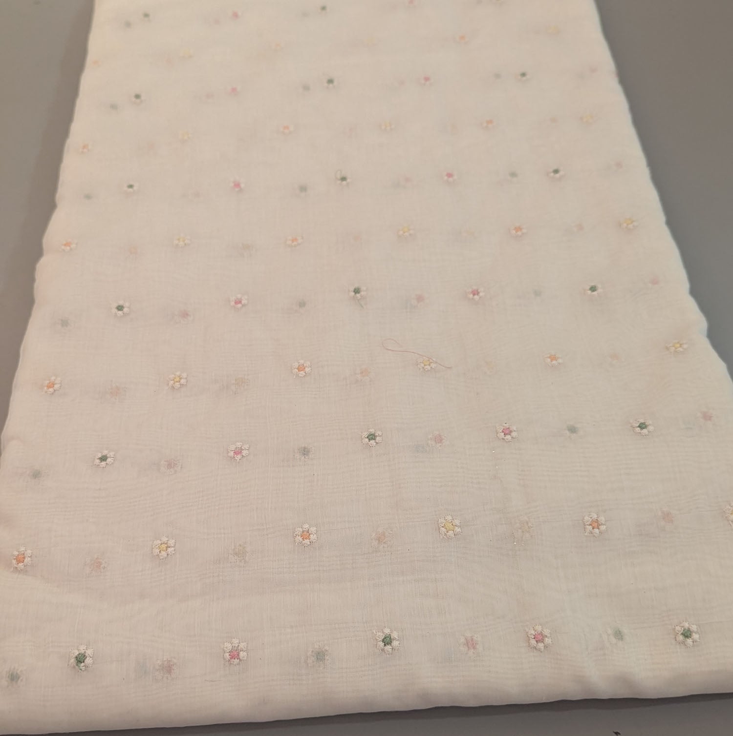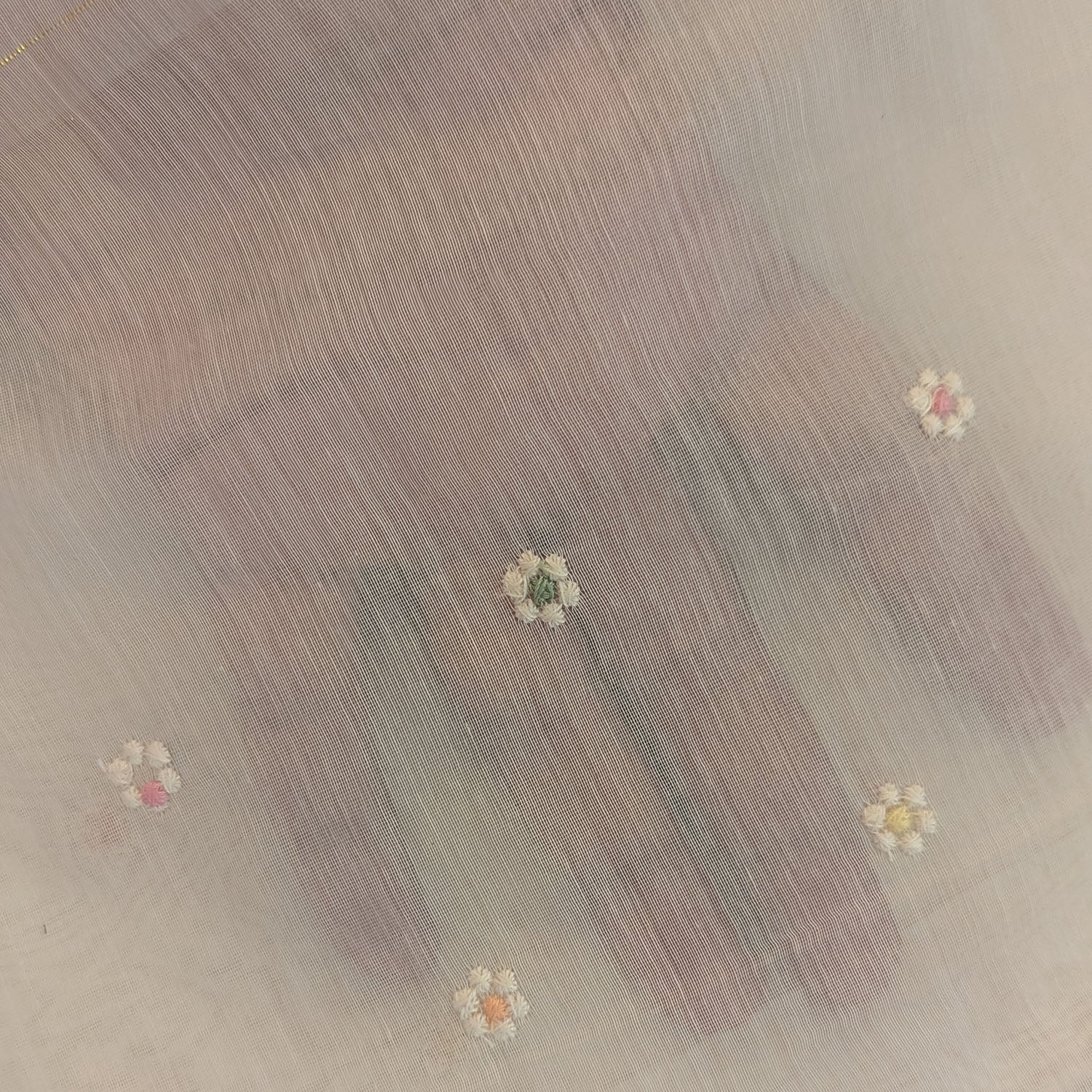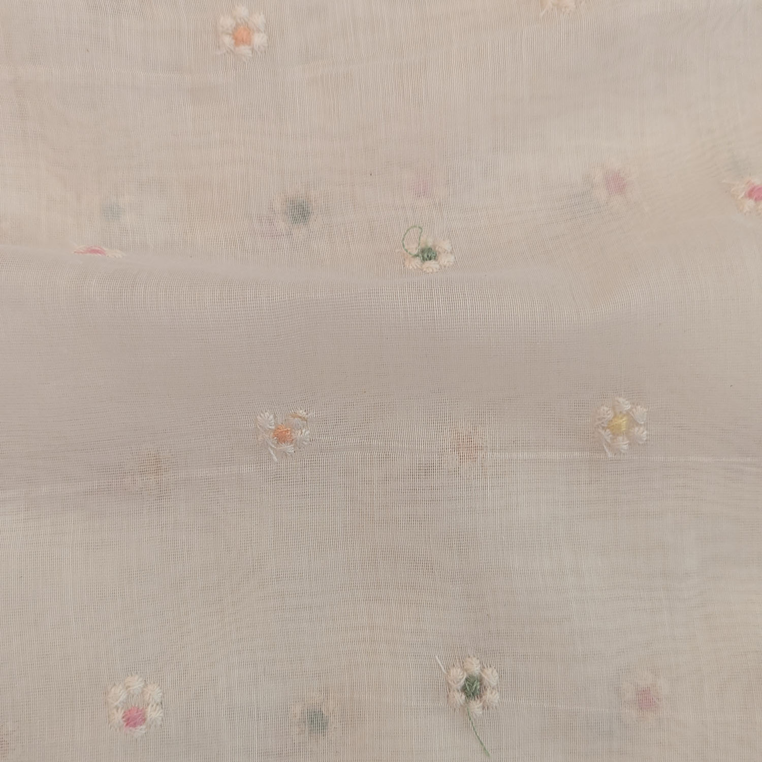 Off-White Pastel Floral Embroidered Viscose Mul Chanderi Fabric