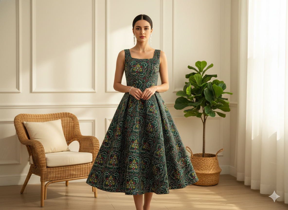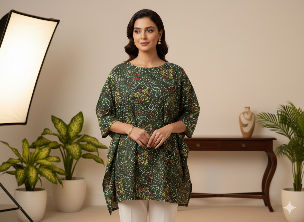प्रीमियम बटर क्रेप फ़ैब्रिक एक शानदार, उच्च गुणवत्ता वाला कपड़ा है जो अपनी मुलायम, चिकनी बनावट और सुरुचिपूर्ण ड्रेप के लिए जाना जाता है। इस कपड़े की एक नाजुक, थोड़ी झुर्रीदार सतह है, जो इसे एक संयमित लेकिन परिष्कृत रूप देती है। इस कपड़े पर लागू डिजिटल प्रिंटिंग तकनीक जीवंत, जटिल पैटर्न और तेज स्पष्टता के साथ डिजाइन की अनुमति देती है, जो इसे ड्रेस, स्कर्ट, ब्लाउज और यहां तक कि स्कार्फ जैसे फैशन-फॉरवर्ड परिधानों के लिए आदर्श बनाती है।