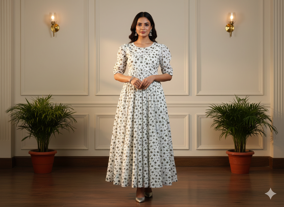 प्रीमियम बटर क्रेप फ़ैब्रिक एक शानदार, उच्च गुणवत्ता वाला कपड़ा है जो अपनी मुलायम, चिकनी बनावट और सुरुचिपूर्ण ड्रेप के लिए जाना जाता है। इस कपड़े की एक नाजुक, थोड़ी झुर्रीदार सतह है, जो इसे एक संयमित लेकिन परिष्कृत रूप देती है। इस कपड़े पर लागू डिजिटल प्रिंटिंग तकनीक जीवंत, जटिल पैटर्न और तेज स्पष्टता के साथ डिजाइन की अनुमति देती है, जो इसे ड्रेस, स्कर्ट, ब्लाउज और यहां तक कि स्कार्फ जैसे फैशन-फॉरवर्ड परिधानों के लिए आदर्श बनाती है।