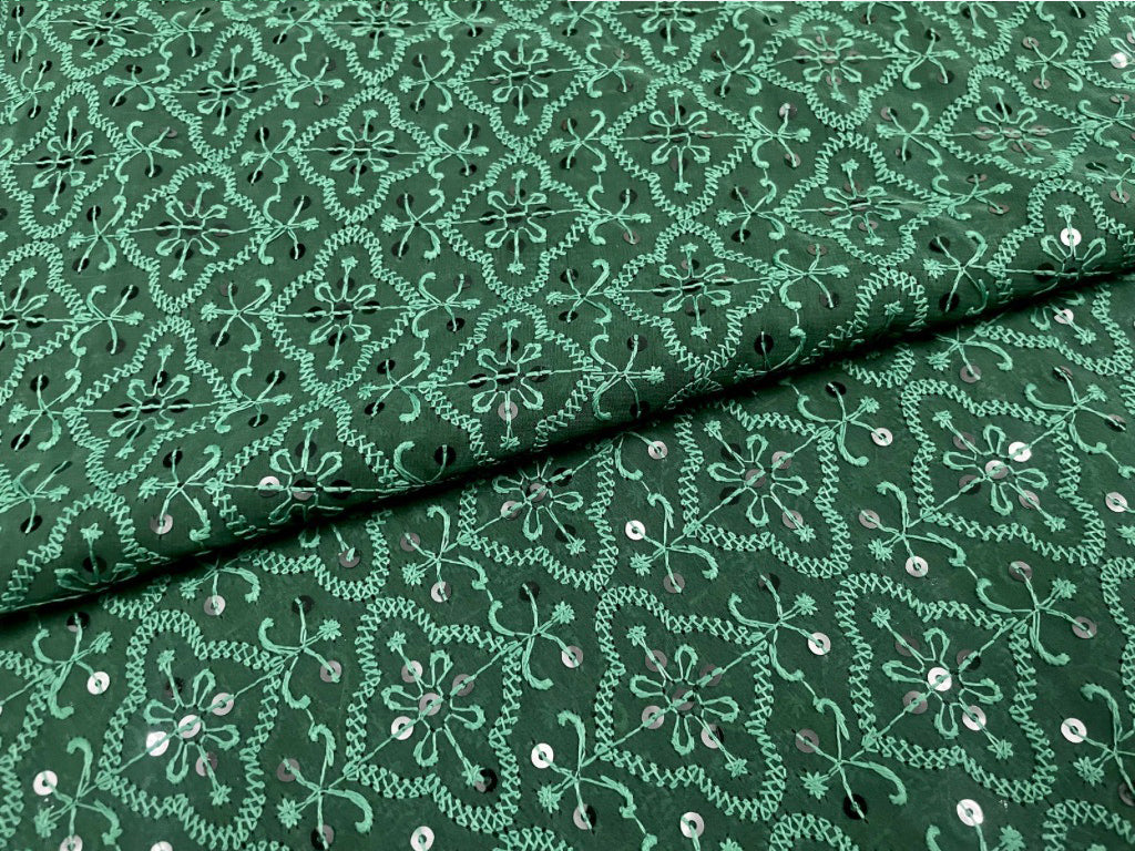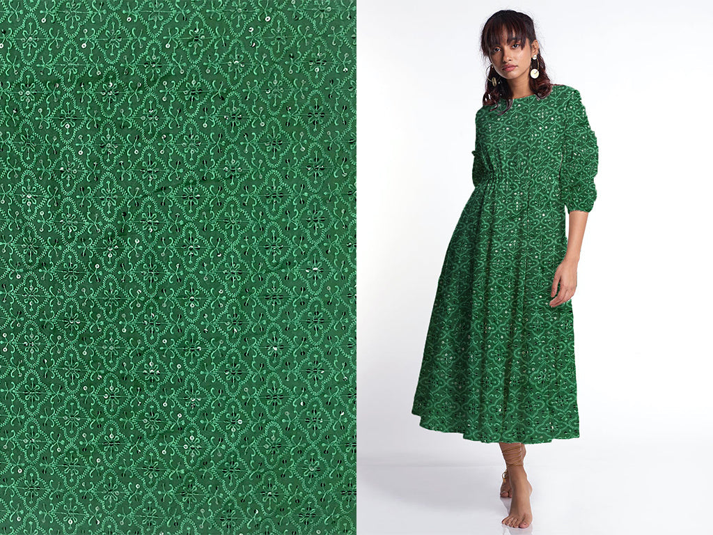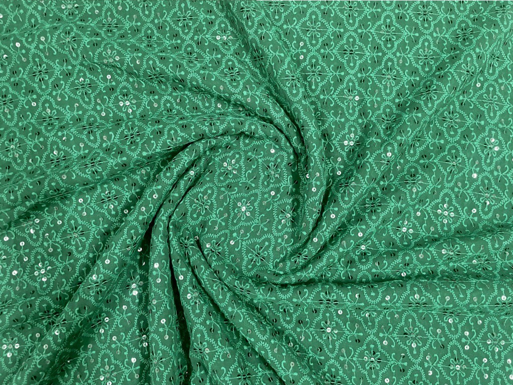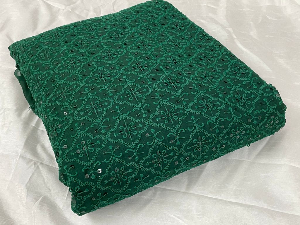 हरा लखनवी कढ़ाई वाला जॉर्जेट कपड़ा
