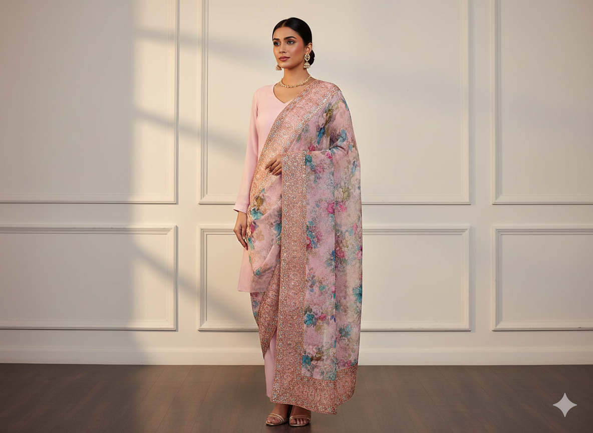 ऑर्गेंज़ा एक पतला, सादा बुना हुआ कपड़ा है जो अपनी कुरकुरी बनावट, हल्केपन और सूक्ष्म चमक के लिए जाना जाता है। पारंपरिक रूप से रेशम से बना और अब अक्सर पॉलिएस्टर या नायलॉन जैसे सिंथेटिक फाइबर के साथ उत्पादित, ऑर्गेंज़ा में एक नाजुक, पारदर्शी उपस्थिति होती है जो कपड़ों में लालित्य और संरचना जोड़ती है। अपनी हवादार प्रकृति के बावजूद, यह अपने आकार को अच्छी तरह से बनाए रखता है, जिससे यह गाउन, साड़ी, दुपट्टे, ओवरले और सजावटी लहजे में वॉल्यूम बनाने के लिए आदर्श है। ऑर्गेंज़ा अपने अलौकिक रूप और शानदार फिनिश के लिए दुल्हन और शाम के पहनावे में पसंदीदा है, जो किसी भी डिज़ाइन को परिष्कार का स्पर्श देता है।