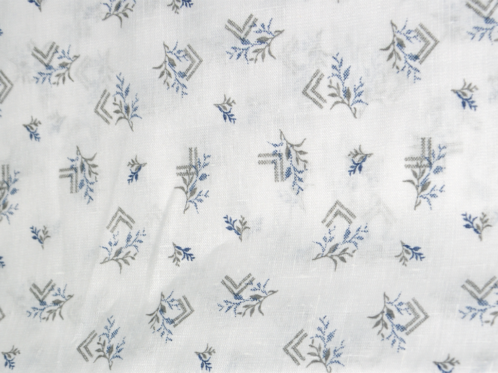 सफ़ेद पुष्प मुद्रित सूती लिनन कपड़ा