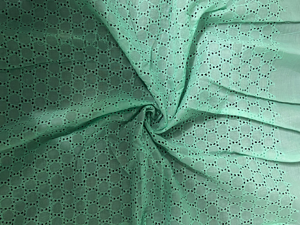 This Pista Green Cotton Chikan fabric features finely detailed Chikan embroidery arranged in a subtle, all-over pattern that reflects timeless Chikankari craftsmanship. Made from lightweight, skin-friendly cotton, it offers superior breathability and comfort, especially ideal for warm climates. The calm pista green shade adds a fresh and sophisticated appeal, making it suitable for both traditional and modern silhouettes. Easy to stitch, drape, and maintain, this fabric blends classic artistry with contemporary style.