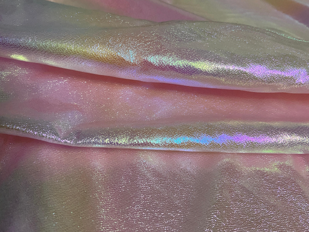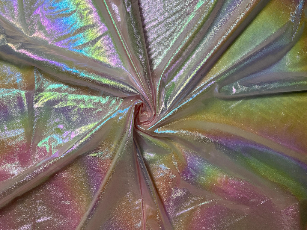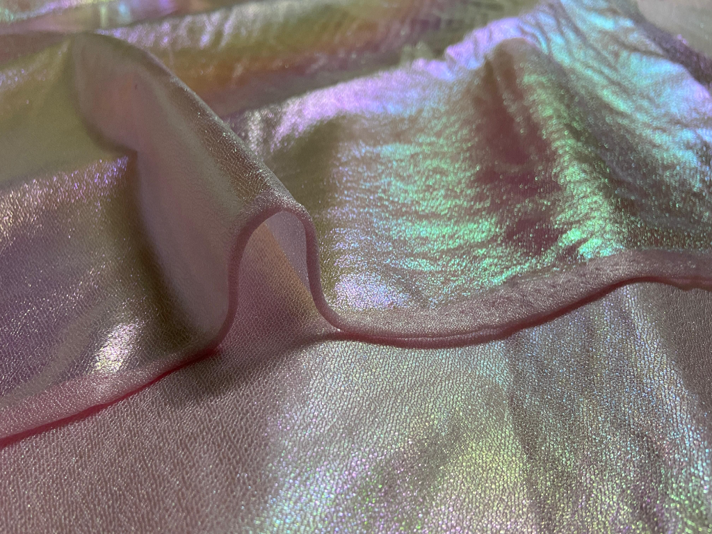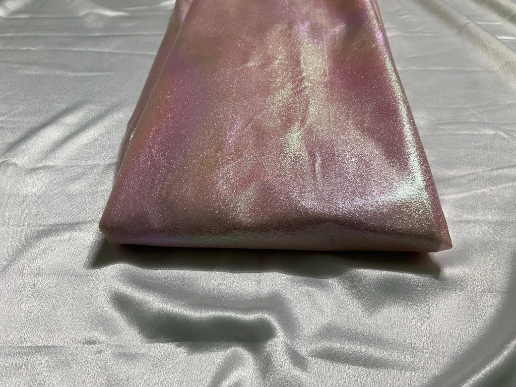 Peach Rainbow Silk is a premium-grade textile engineered with a dual-tone weave or a specialized finish that gives it a holographic luster.