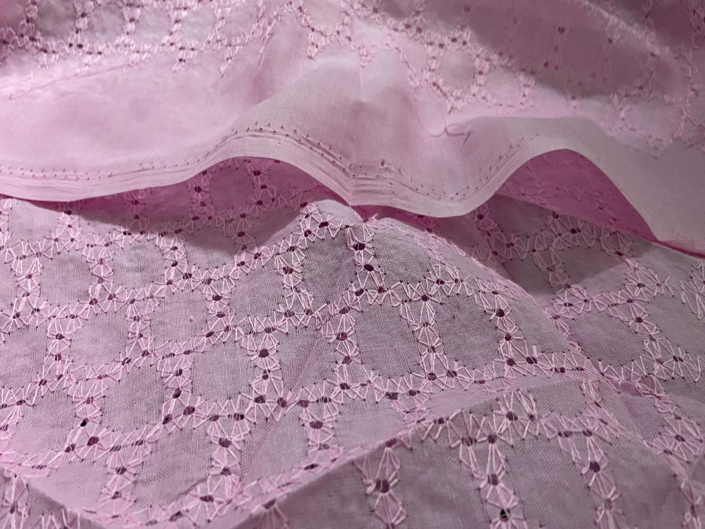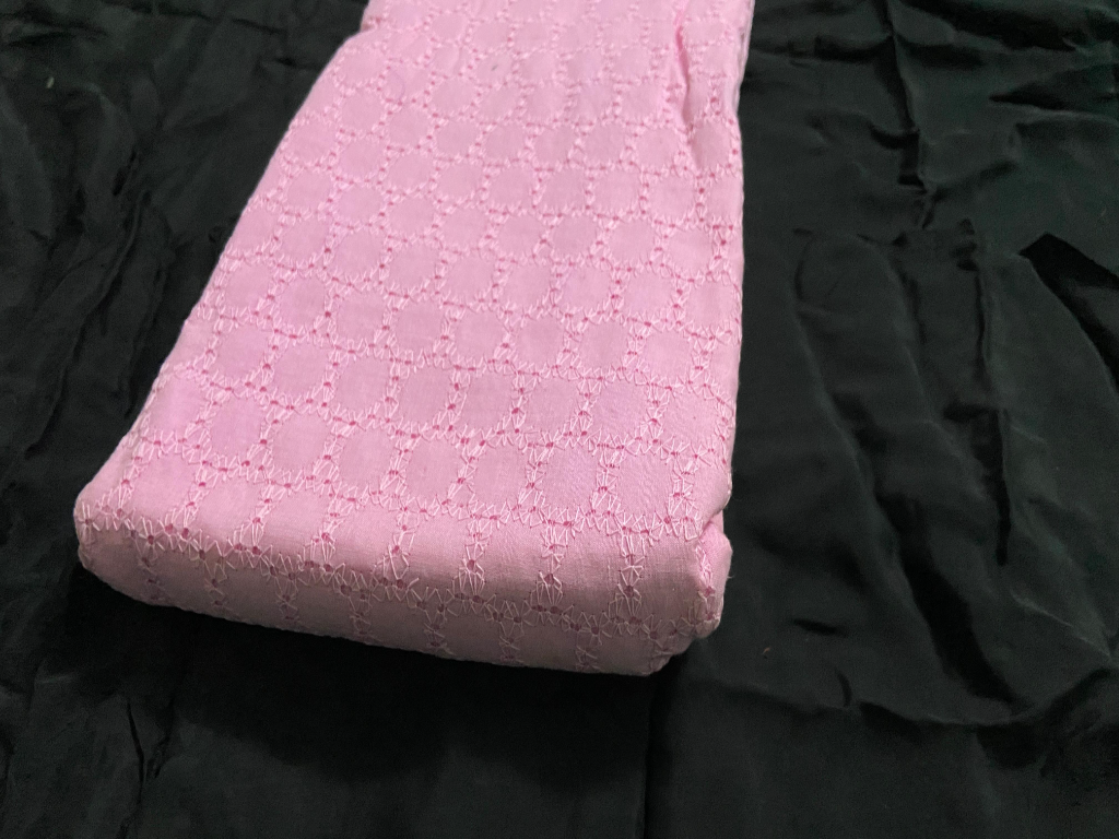 This Pink Cotton Chikan fabric features finely detailed Chikan embroidery arranged in a neat, all-over pattern that reflects classic Chikankari craftsmanship. Made from lightweight, skin-friendly cotton, it ensures excellent comfort and airflow throughout the day. The soothing pink shade enhances the fabric’s feminine appeal, making it ideal for both traditional and contemporary outfits. Easy to stitch, drape, and maintain, this fabric beautifully blends timeless embroidery with modern versatility.