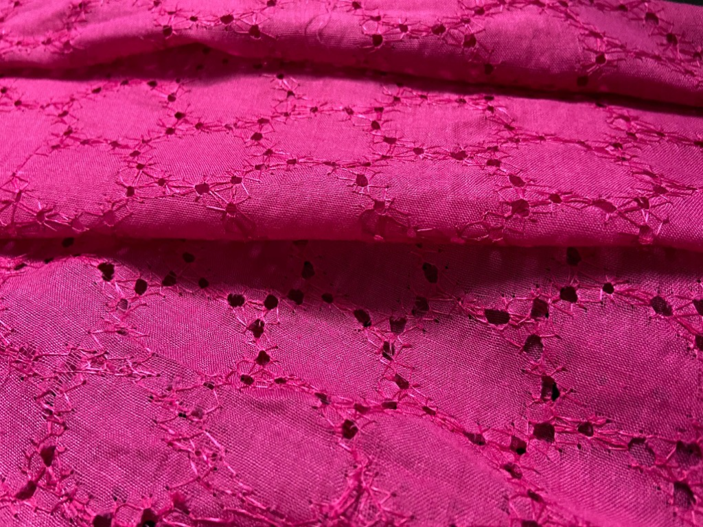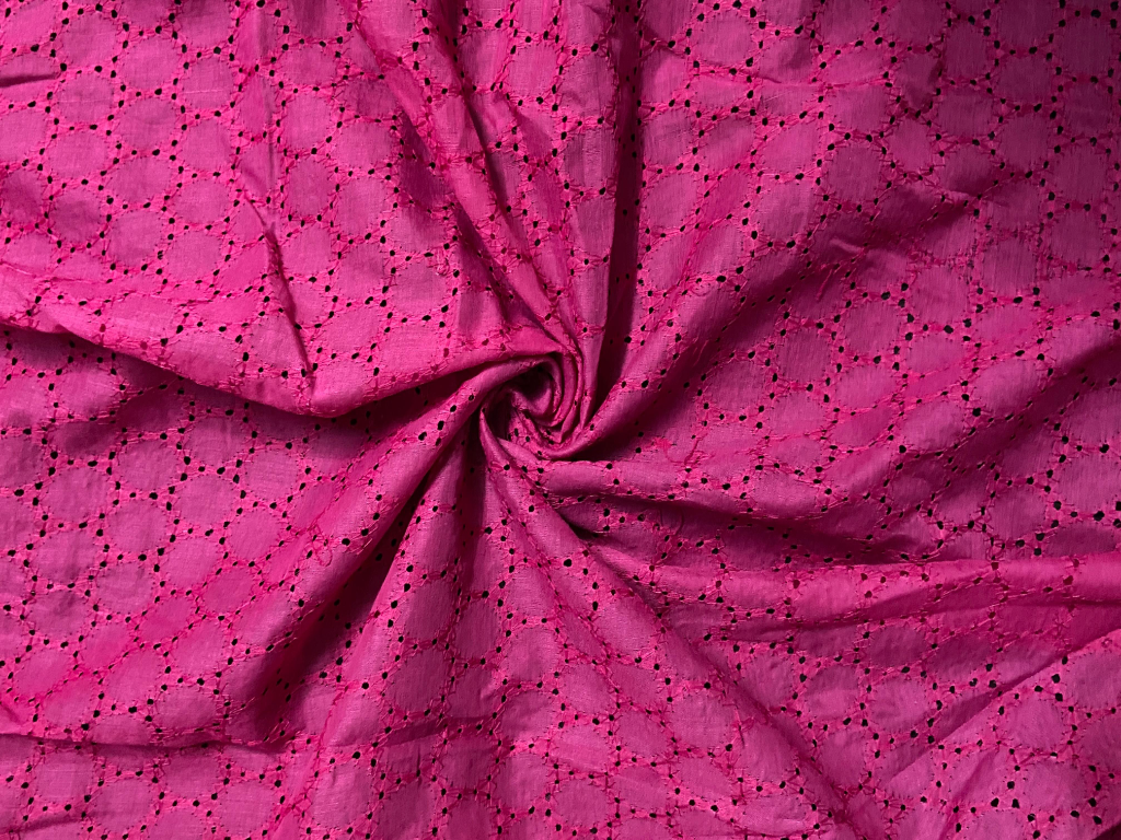 This Rani Cotton Chikan fabric showcases finely detailed Chikan embroidery arranged in a classic, all-over pattern inspired by traditional Chikankari craftsmanship. Made from lightweight, skin-friendly cotton, it offers excellent breathability and day-long comfort. The deep rani pink color beautifully enhances the embroidery, giving the fabric a luxurious and festive appeal. Easy to stitch, drape, and maintain, this fabric is ideal for creating striking ethnic wear as well as elegant contemporary silhouettes.
