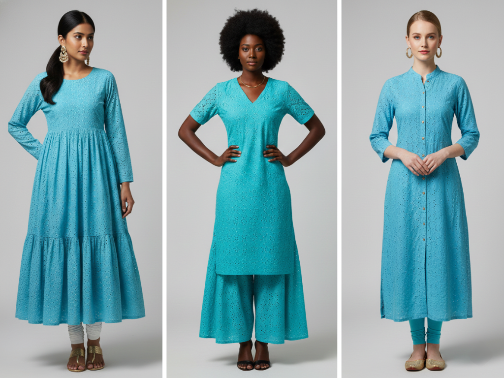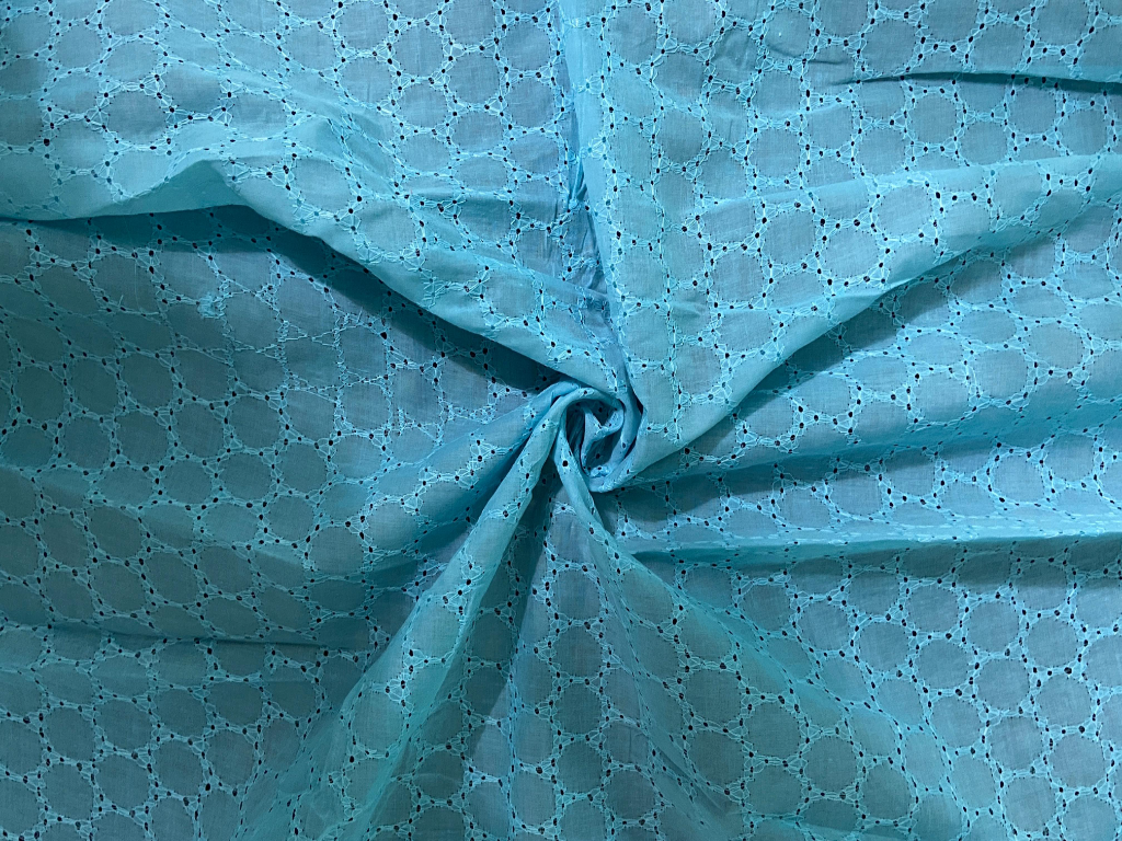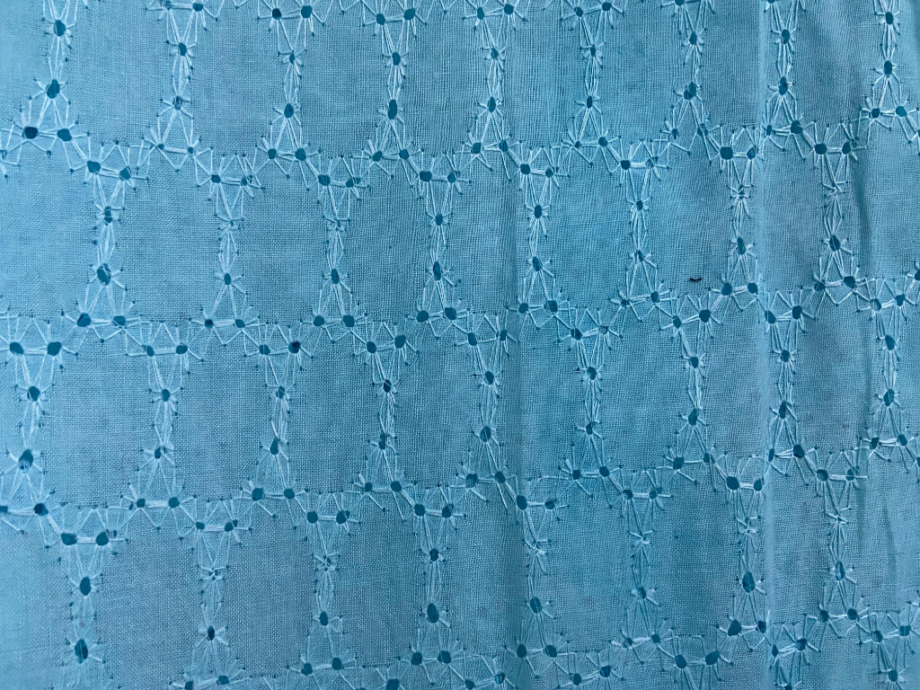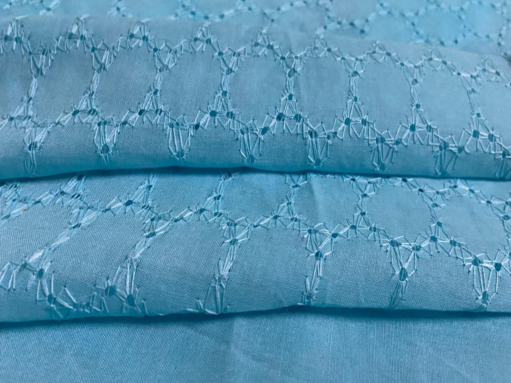 This Sky Blue Cotton Chikan fabric showcases finely detailed Chikan embroidery arranged in a graceful, all-over pattern inspired by traditional Chikankari craftsmanship. Made from lightweight, skin-friendly cotton, it ensures excellent breathability and a soft feel throughout the day. The serene sky-blue shade highlights the embroidery beautifully, creating a refined and airy aesthetic. Easy to stitch, drape, and maintain, this fabric is perfect for crafting elegant ethnic wear as well as modern silhouettes.