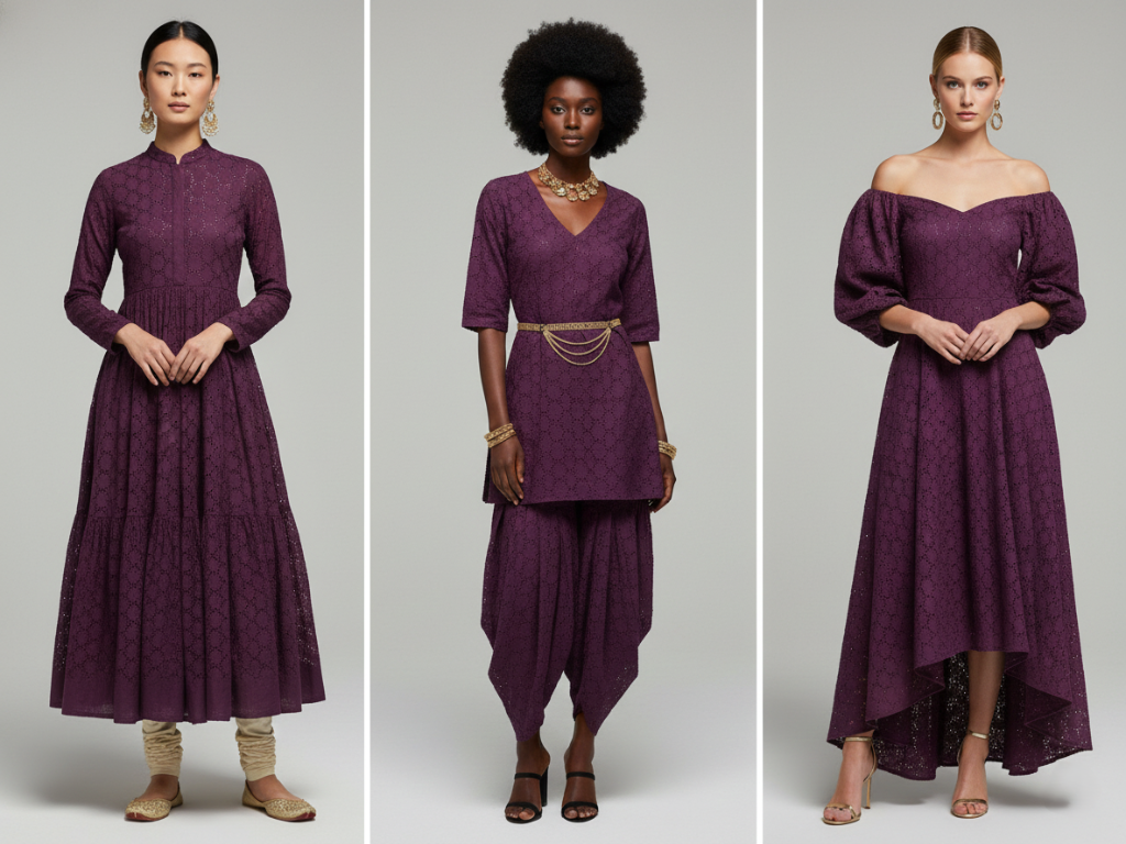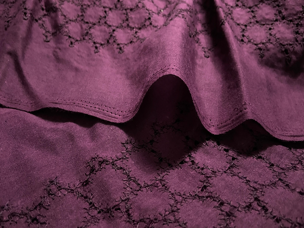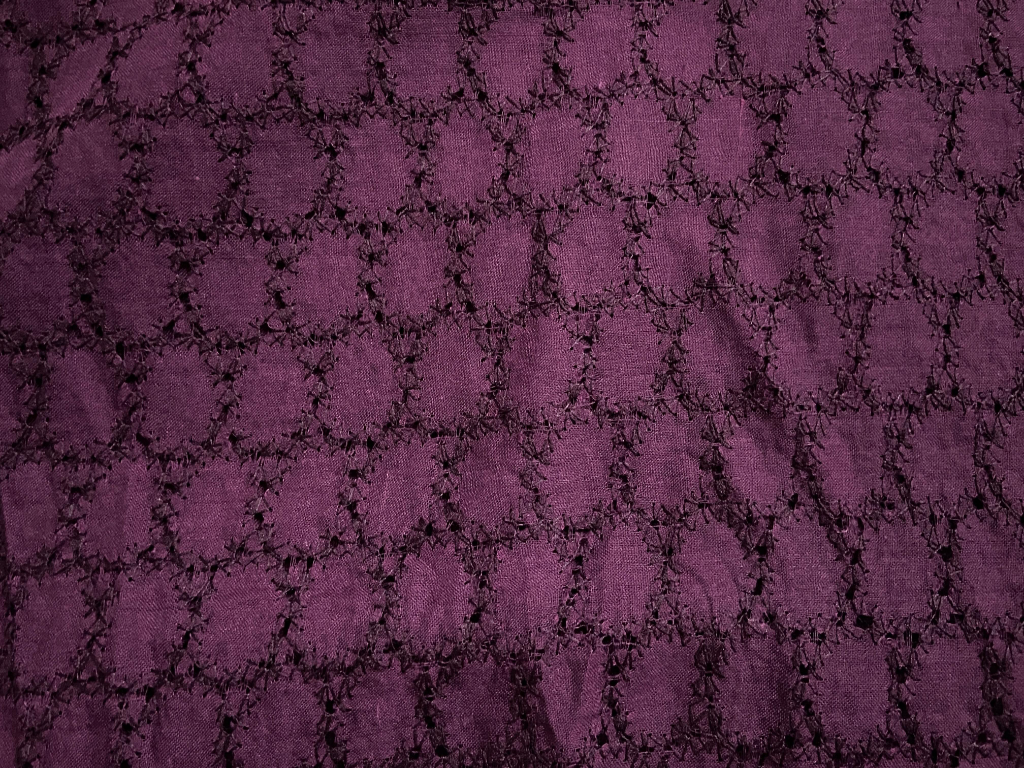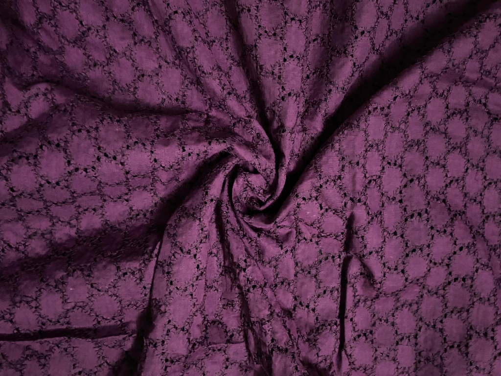 This Wine Cotton Chikan fabric features finely detailed Chikan embroidery arranged in a classic, all-over pattern inspired by traditional Chikankari craftsmanship. The lightweight cotton base ensures excellent breathability and a smooth, skin-friendly feel, making it comfortable for all-day wear. The luxurious wine color enhances the embroidery beautifully, delivering a refined and graceful appearance. Easy to stitch, drape, and maintain, this fabric is ideal for creating elegant ethnic outfits as well as stylish contemporary designs.