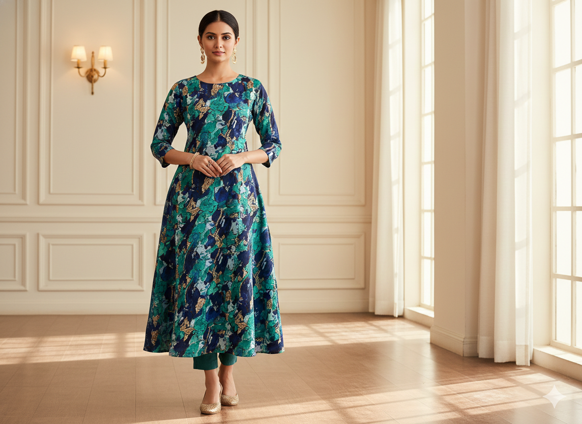 डिजिटल प्रिंट कॉटन रेयान फ़ैब्रिक एक बहुमुखी और हल्का कपड़ा है जो कॉटन की प्राकृतिक कोमलता को रेयान के रेशमी ड्रेप के साथ जोड़ता है। इस फ़ैब्रिक में जटिल और जीवंत डिजिटल प्रिंट हैं, जो स्टाइलिश परिधान और घर की सजावट के सामान बनाने के लिए आदर्श विस्तृत और ज्वलंत पैटर्न प्रदान करते हैं। यह अत्यधिक सांस लेने योग्य, नमी सोखने वाला और आरामदायक है, जो इसे कैज़ुअल और फ़ॉर्मल दोनों तरह के पहनावे के लिए उपयुक्त बनाता है। यह मिश्रण स्थायित्व, शिकन प्रतिरोध और रखरखाव में आसानी सुनिश्चित करता है। ड्रेस, शर्ट, स्कार्फ और पर्दों के लिए लोकप्रिय, यह फ़ैब्रिक अपनी सुरुचिपूर्ण फ़िनिश और समृद्ध रंग प्रस्तुति के लिए पसंद किया जाता है, जो समकालीन फ़ैशन और डिज़ाइन वरीयताओं को पूरा करता है।
