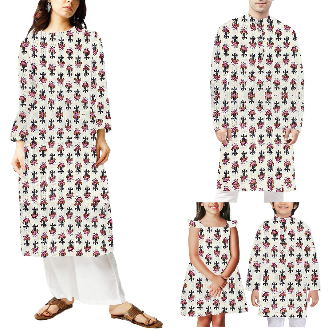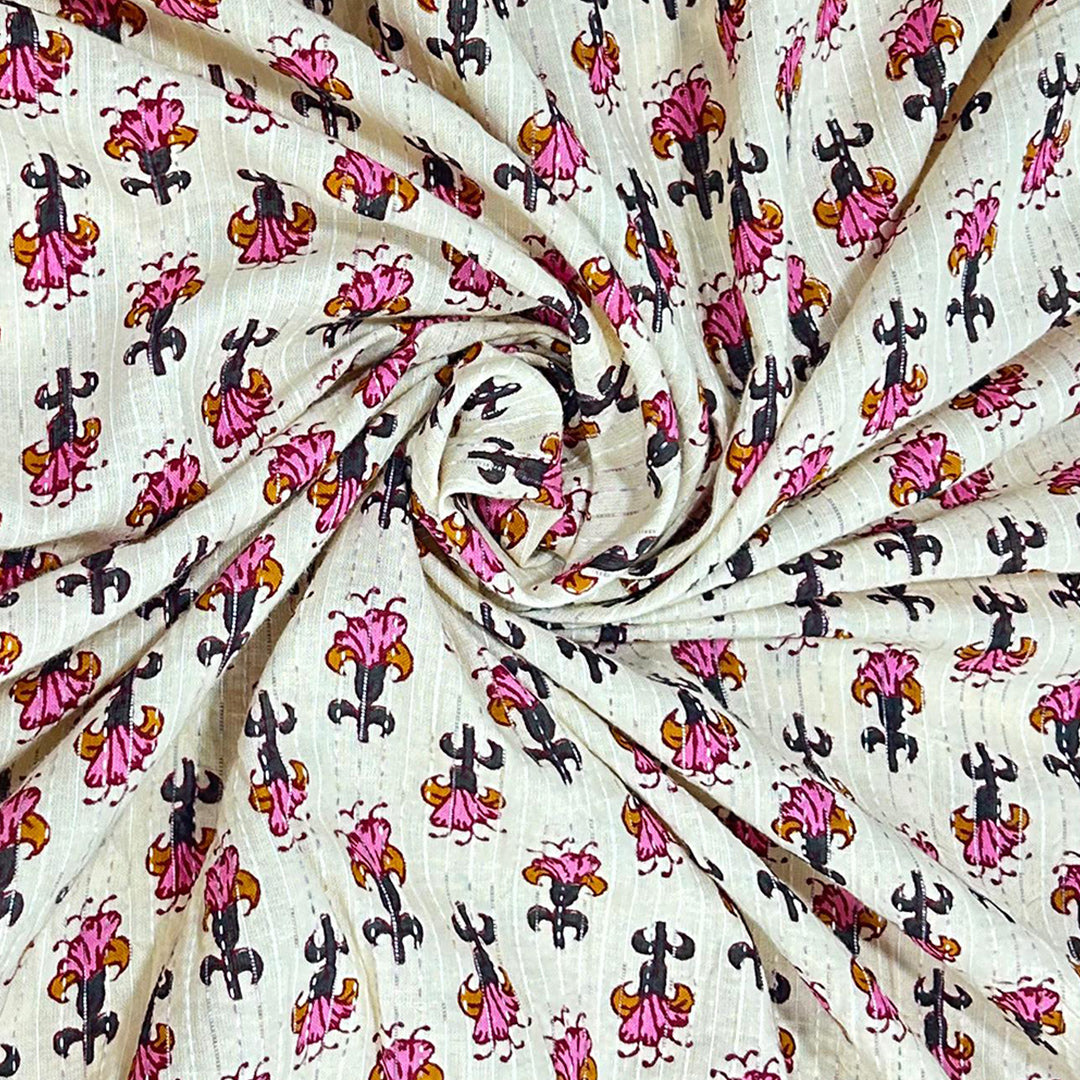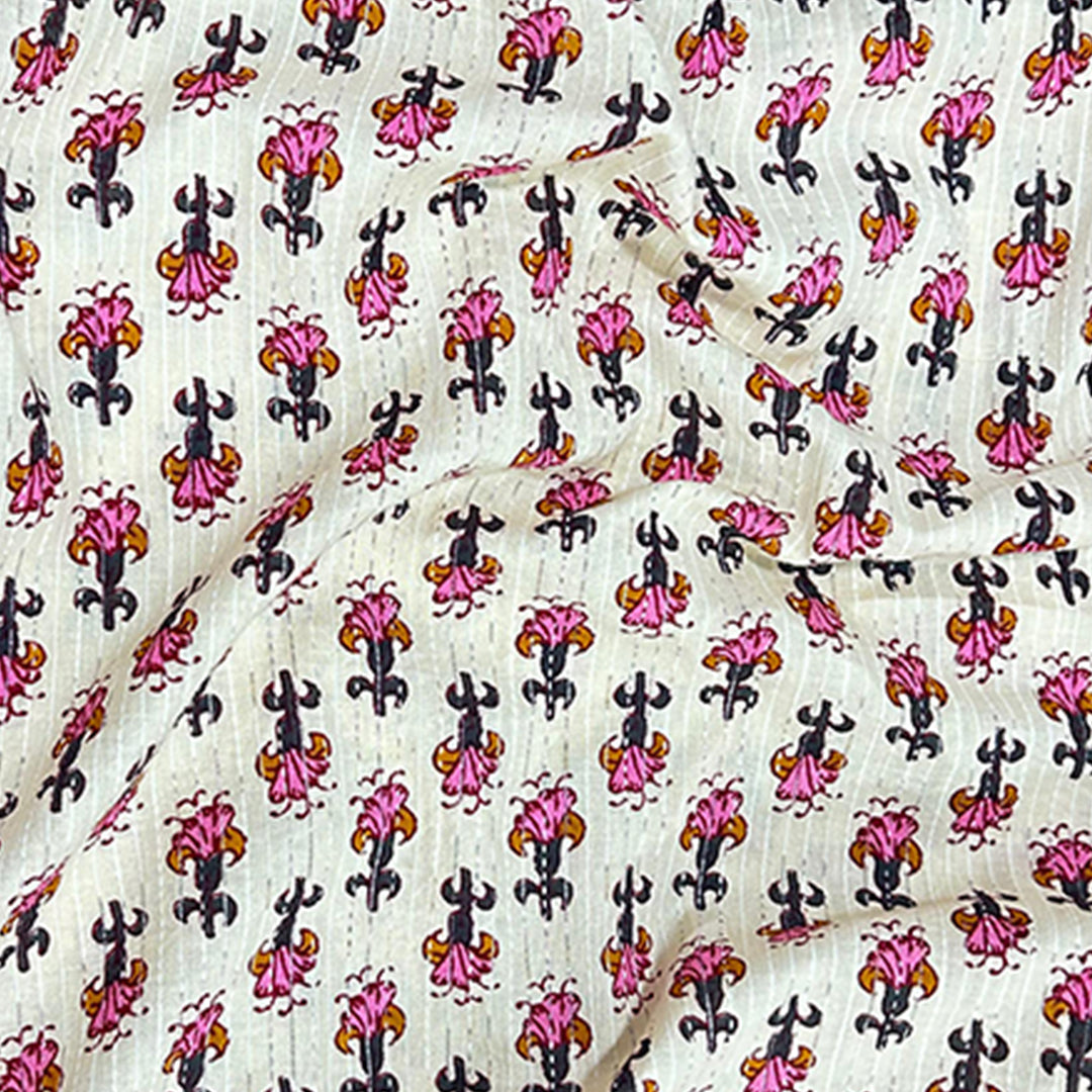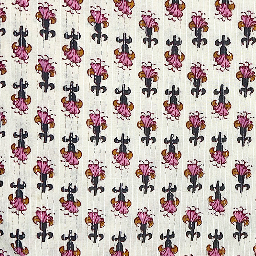 हल्का क्रीम पुष्प मुद्रित सूती कांथा कपड़ा