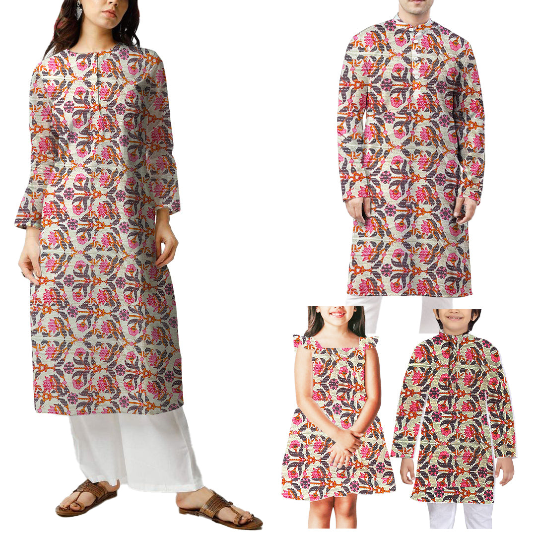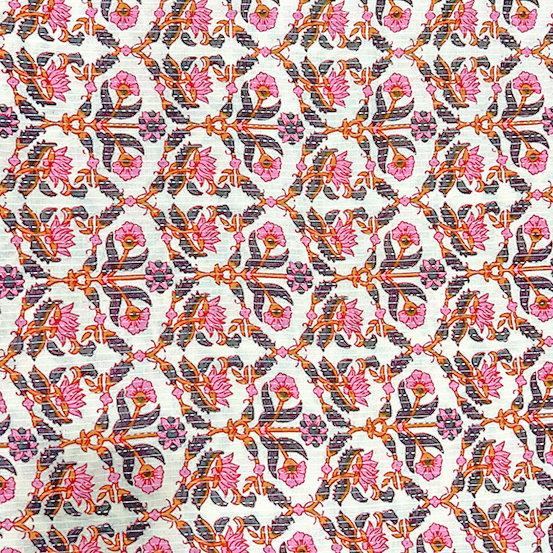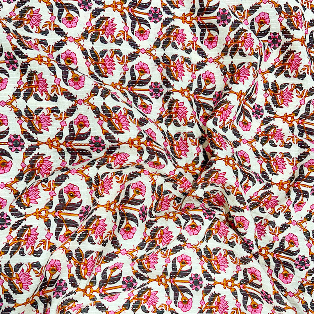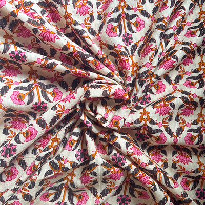 हल्का क्रीम पुष्प मुद्रित सूती कांथा कपड़ा