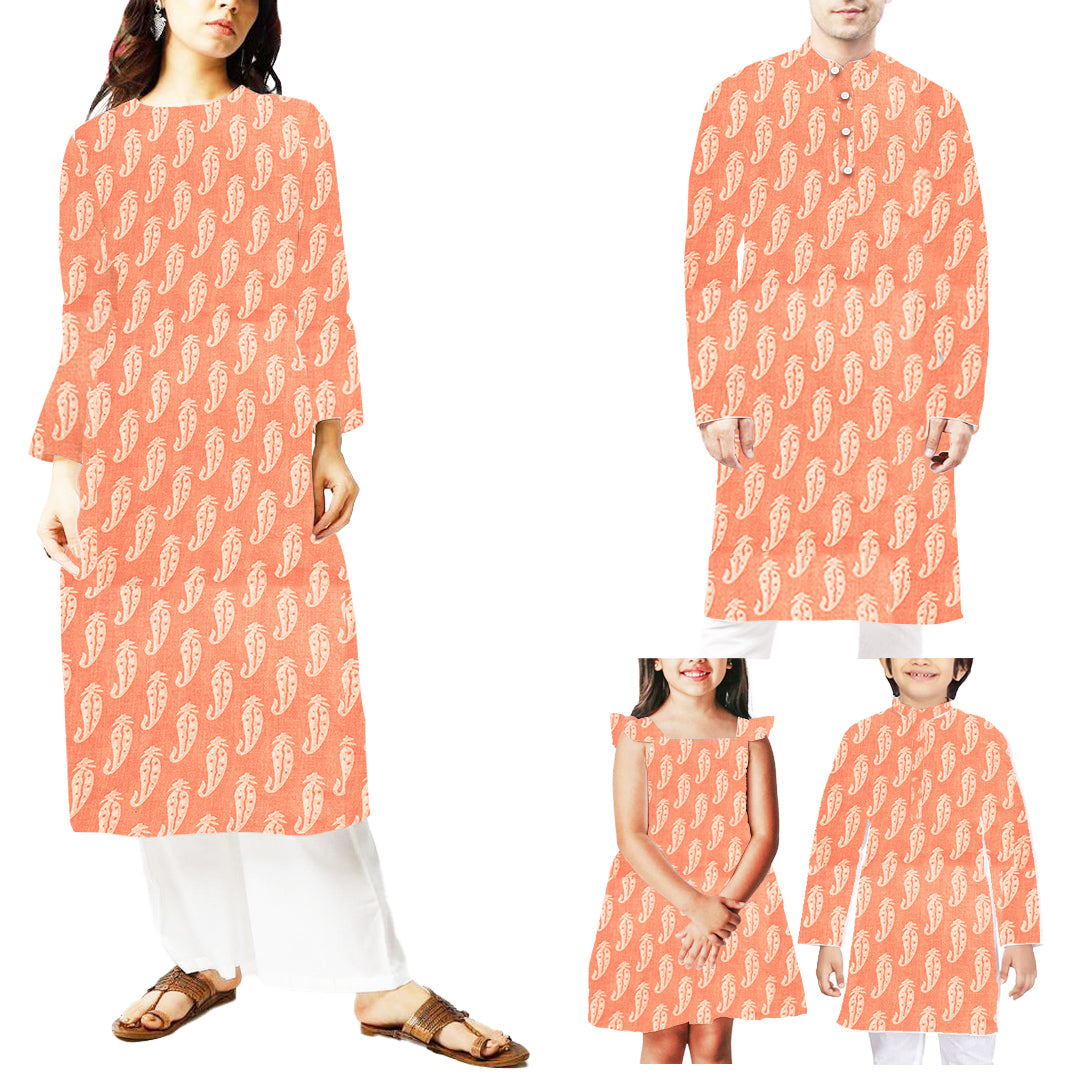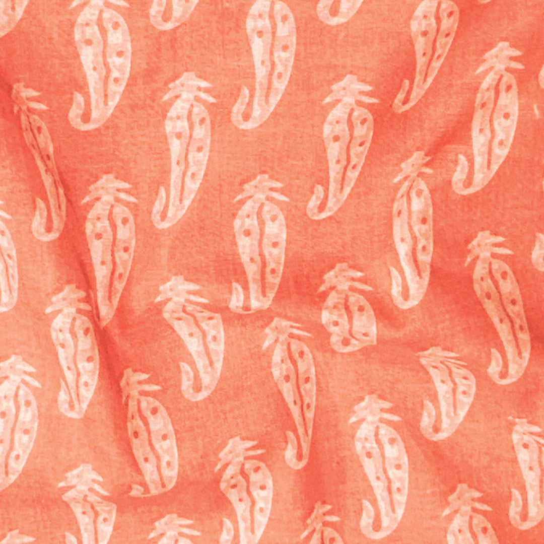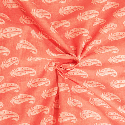 पीच पैस्ले प्रिंटेड कॉटन फ़ैब्रिक