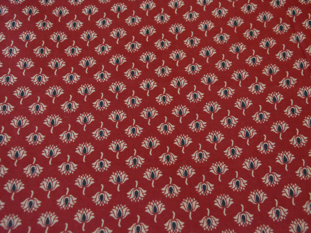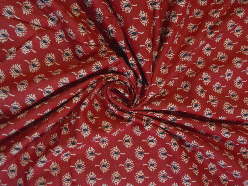Red & Cream Lotus Printed Pure Cotton Fabric