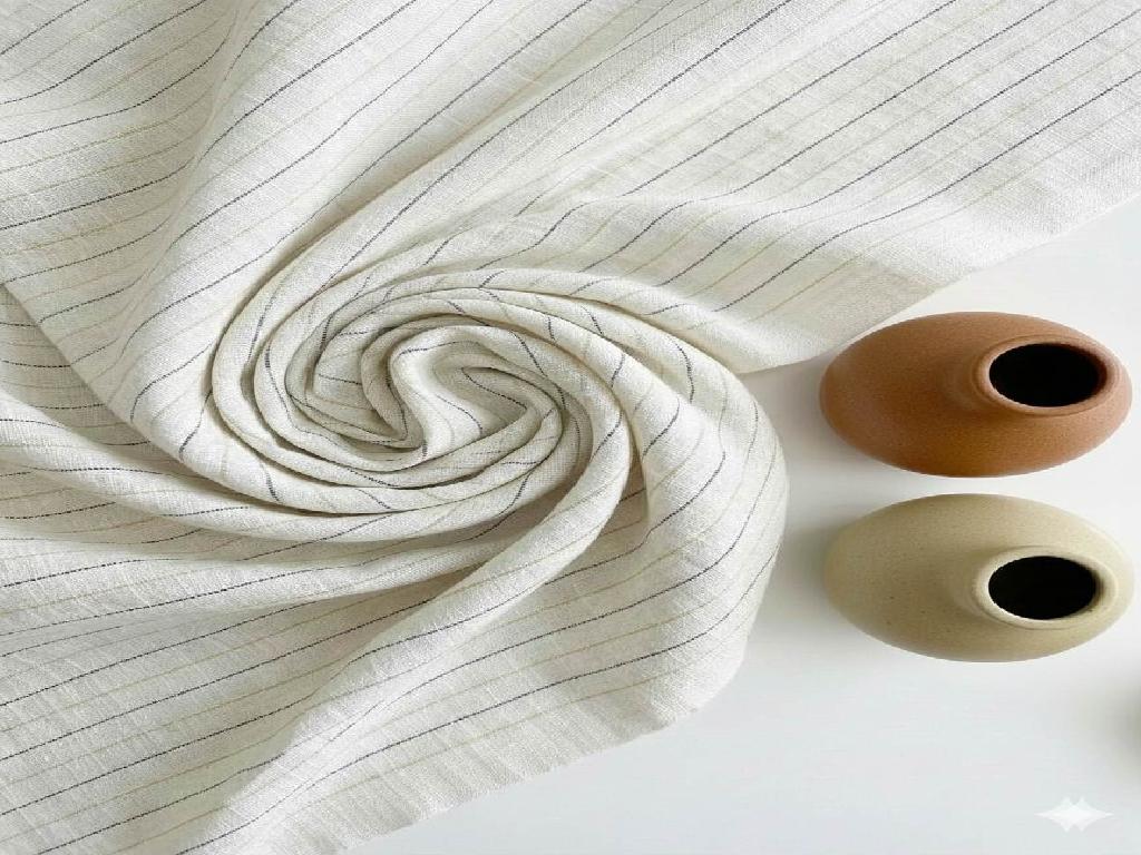 Off White Cotton Linen Fabric with Brown & Light Brown Horizontal Lines (60 lea)