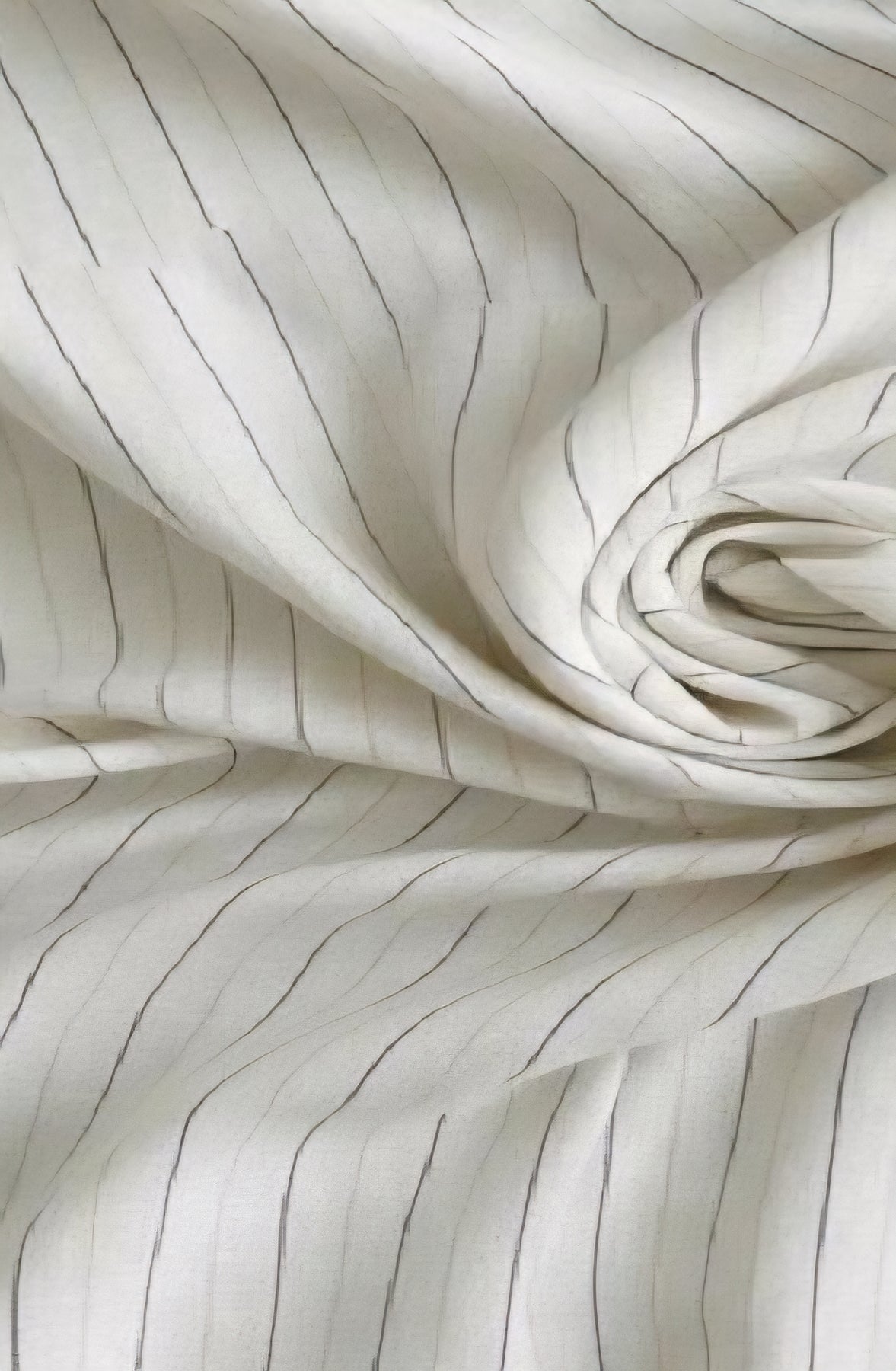 Experience ultimate comfort and style with our Off White Cotton Linen. This versatile fabric is perfect for all your wardrobe needs. Its breathable material with Brown and light brown thin lines give a modern and sophisticated touch to any outfit. Upgrade your wardrobe today!