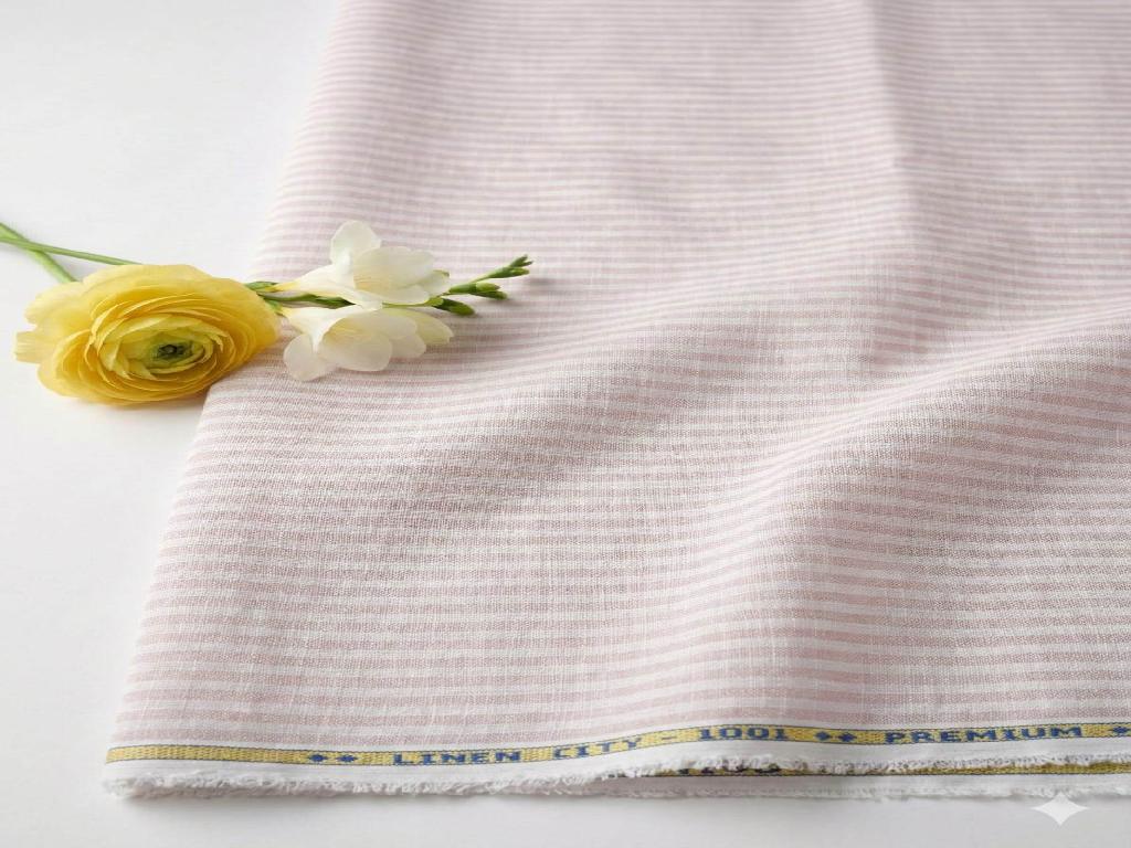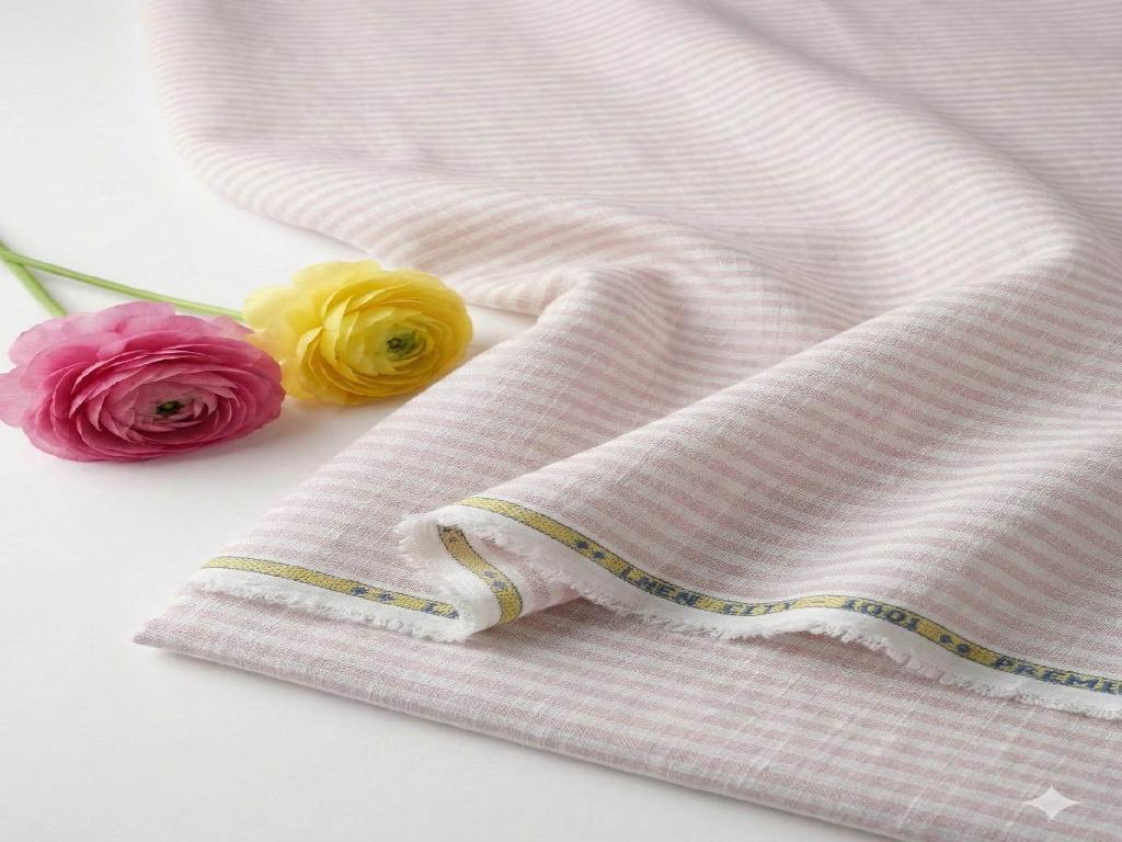 Onion Pink & White Striped Cotton Linen Fabric
