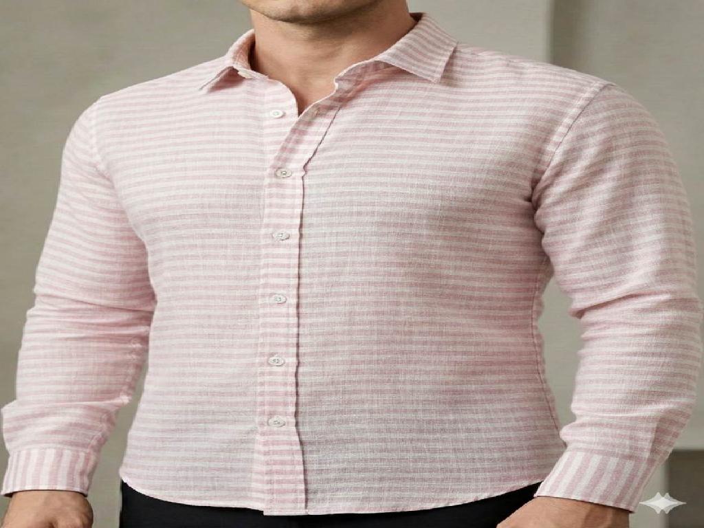 This expertly crafted Onion Pink with white striped pattern, perfect for creating stylish and versatile shirts. Made with 60lea thread for a durable and comfortable fit. Elevate your wardrobe with this classic and versatile fabric.