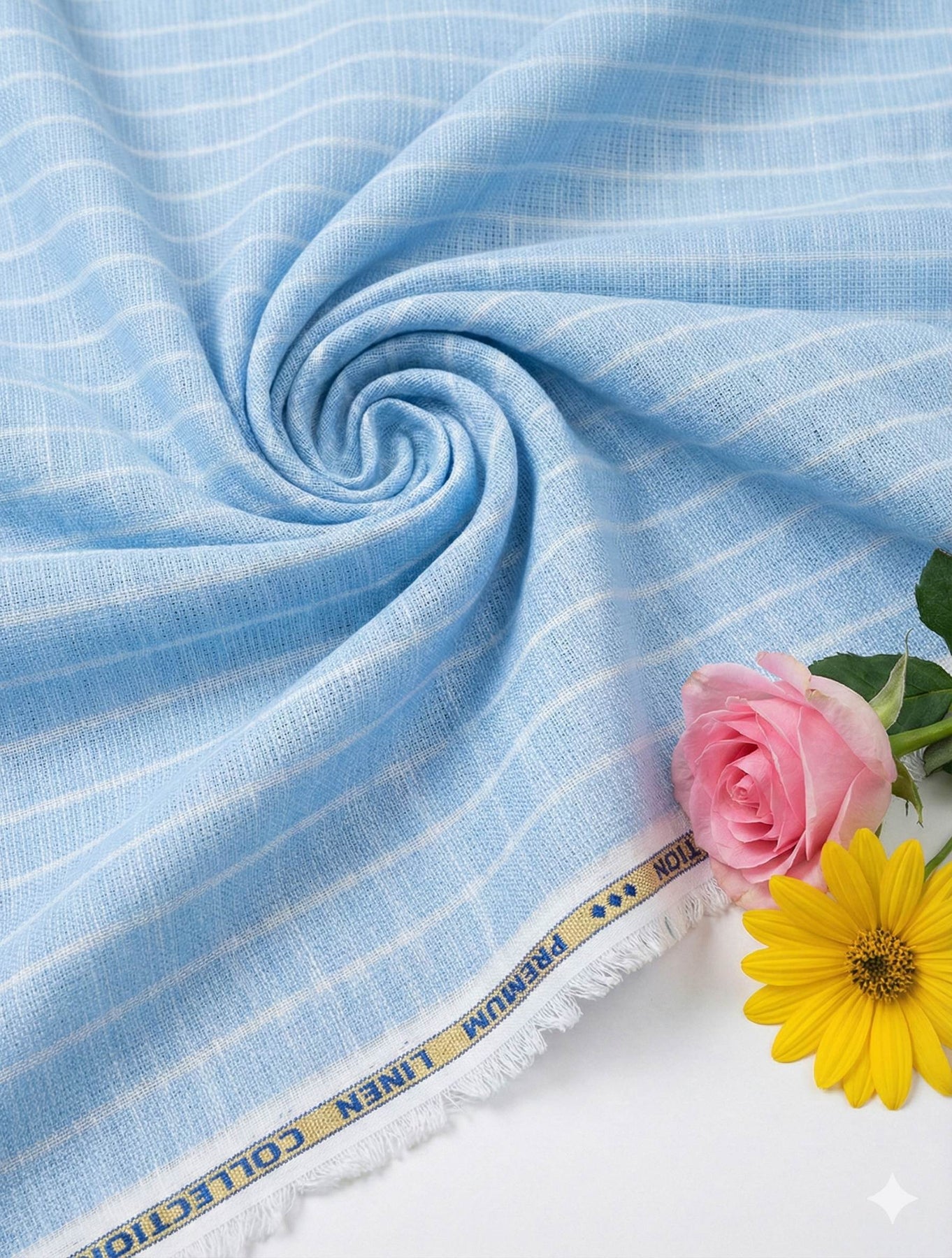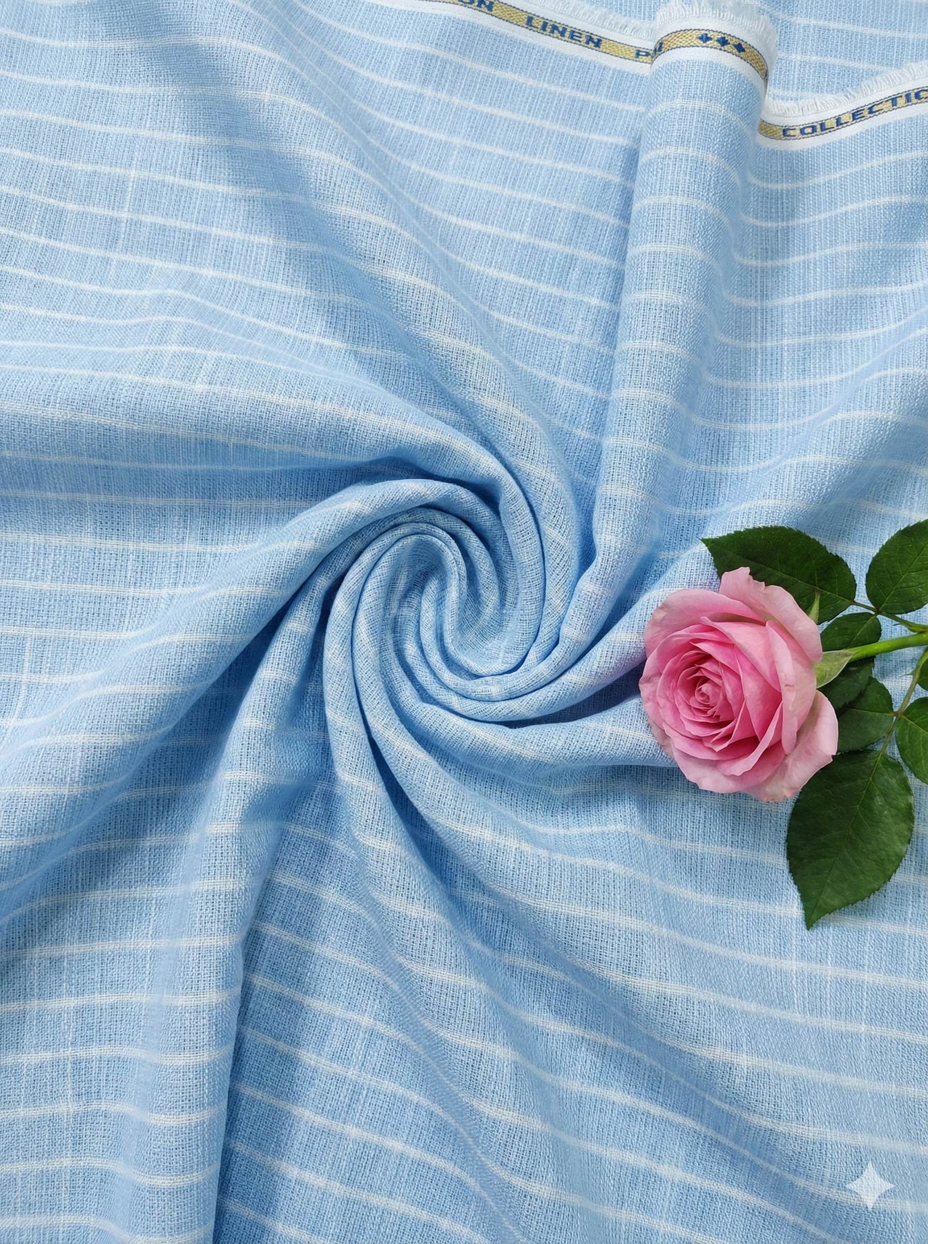 Made from premium cotton linen, our Sky Blue fabric features crisp white horizontal lines, adding the perfect touch to any dress. Breathable and durable, this fabric is designed to elevate any outfit while providing comfort and lasting wear. Upgrade your wardrobe with our 60 lea fabric today!