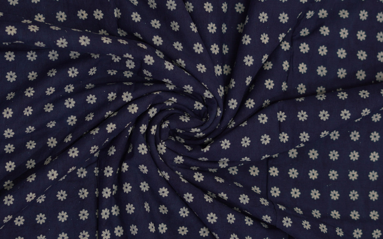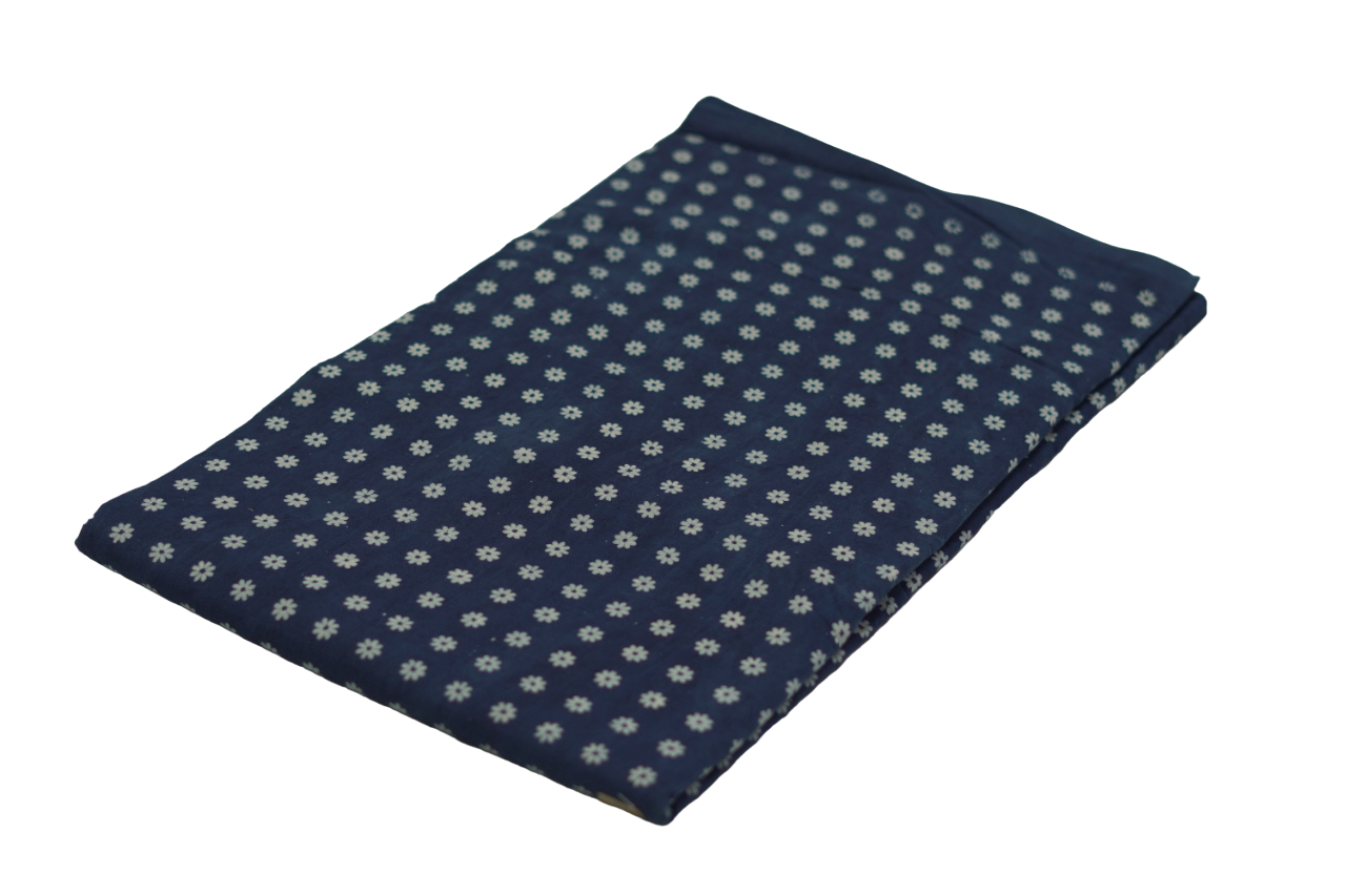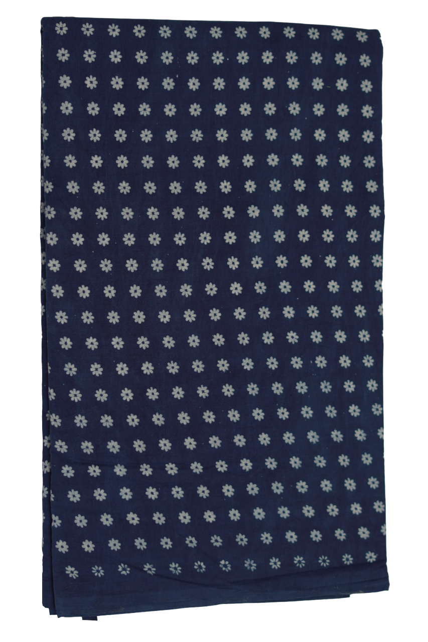 नीला पुष्प मुद्रित डब्बू सूती कपड़ा