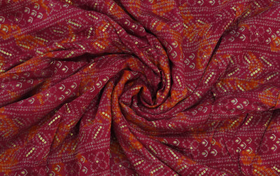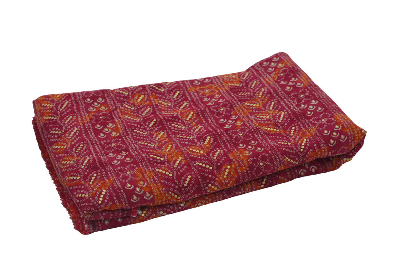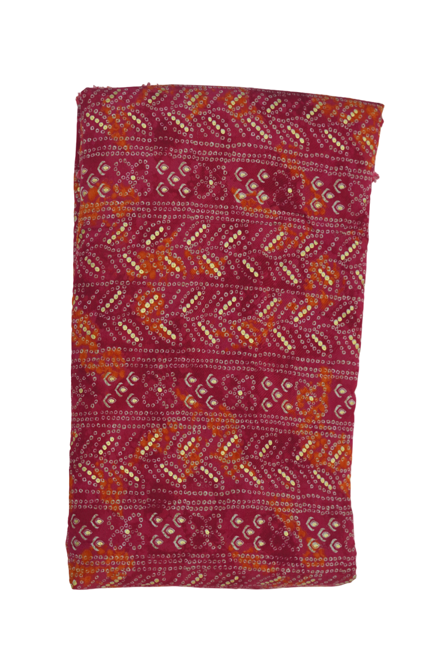 गहरा गुलाबी और नारंगी पारंपरिक बांधनी मुद्रित मलमल सूती कपड़ा