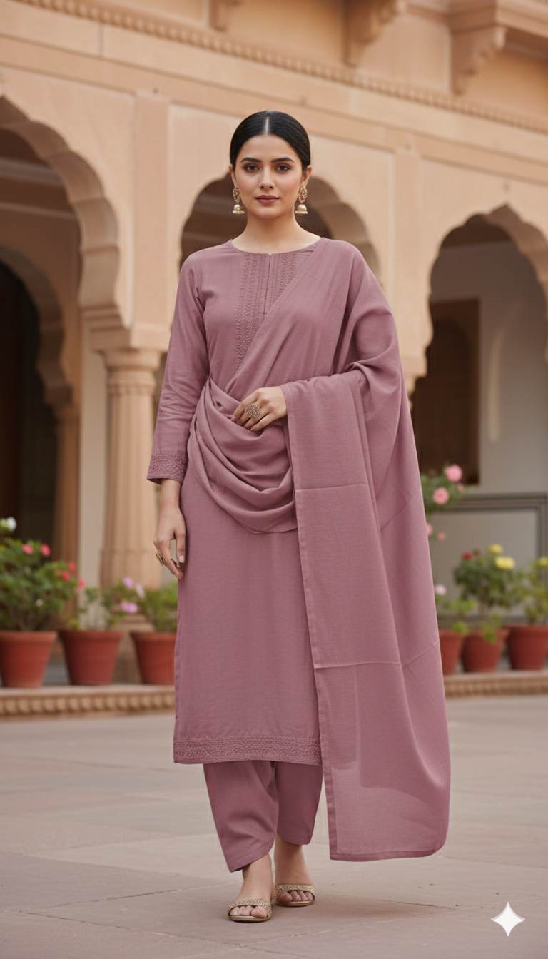 Mul cotton, known for its softness and breathability, offers 40% higher moisture absorption compared to synthetic materials, making it suitable for comfortable wear in various climates. The decorative elements enhance its aesthetic appeal, providing an elegant finish.