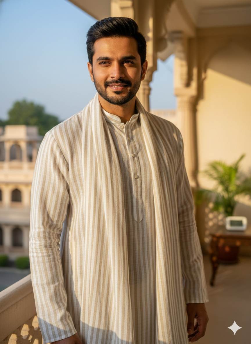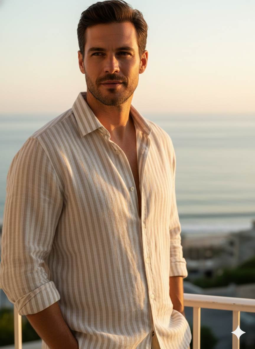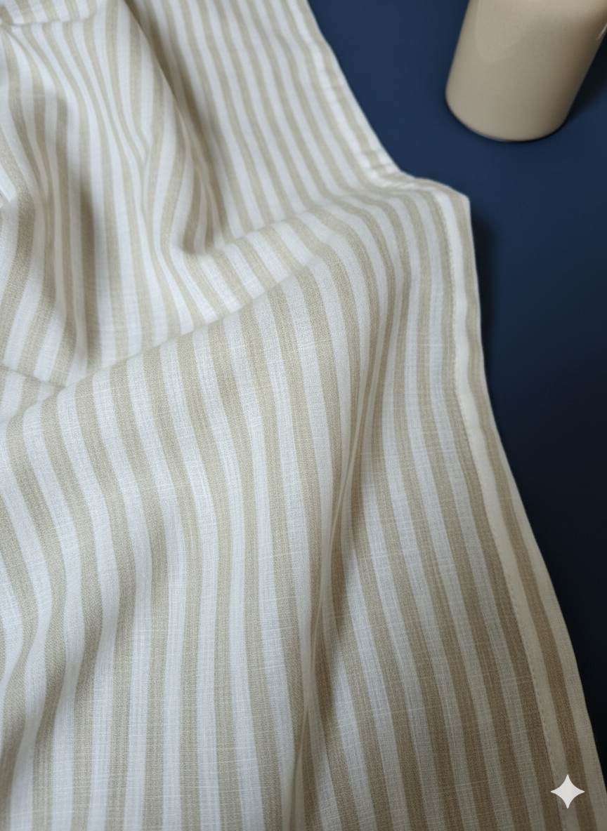 The khakee & White Stripe Cotton Linen offers an appealing aesthetic ideal for enhancing professional attire. Crafted from a cotton-linen blend, this fabric provides breathability (up to 30% more than standard cotton) and comfort, making it suitable for prolonged wear in various environments. Its stylish stripe design contributes to a polished appearance.