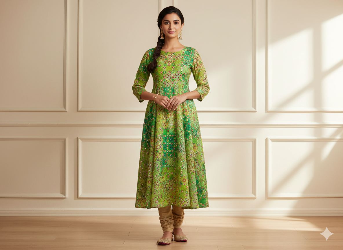 विस्कोस जॉर्जेट फैब्रिक एक हल्का, अर्ध-पारदर्शी कपड़ा है जो अपनी मुलायम बनावट, सुंदर ड्रेप और थोड़ी सी झुर्रीदार फिनिश के लिए जाना जाता है। विस्कोस फाइबर से बना, यह सांस लेने की क्षमता, तरलता और शानदार एहसास का सही मिश्रण प्रदान करता है। इस कपड़े की सतह चिकनी और बनावट वाली है, जो इसे सुरुचिपूर्ण और प्रवाहपूर्ण परिधान बनाने के लिए आदर्श बनाती है। इसका व्यापक रूप से जातीय और समकालीन फैशन में उपयोग किया जाता है, जिसमें साड़ी, अनारकली, ड्रेस, दुपट्टे और स्कार्फ शामिल हैं। विस्कोस जॉर्जेट रंगों को खूबसूरती से अवशोषित करता है, जिसके परिणामस्वरूप जीवंत रंग और जटिल प्रिंट बनते हैं