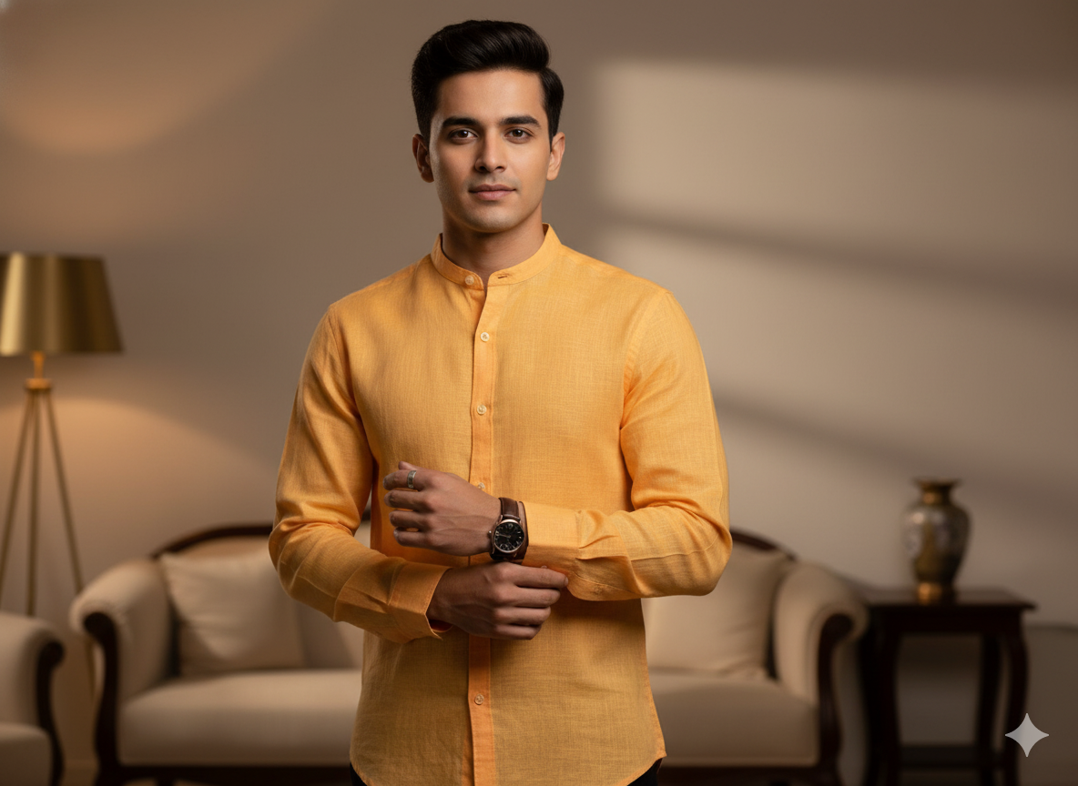 हल्का सरसों शुद्ध लिनन 60 ली कपड़ा