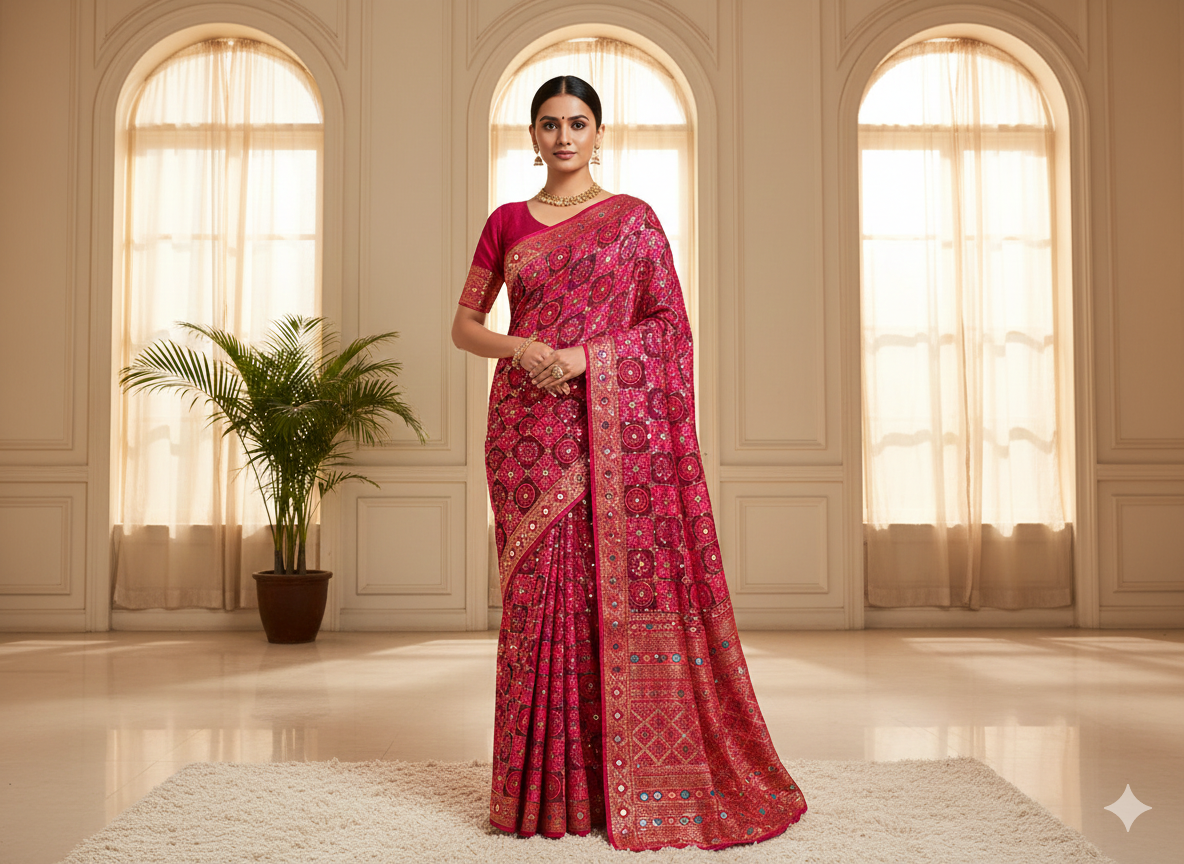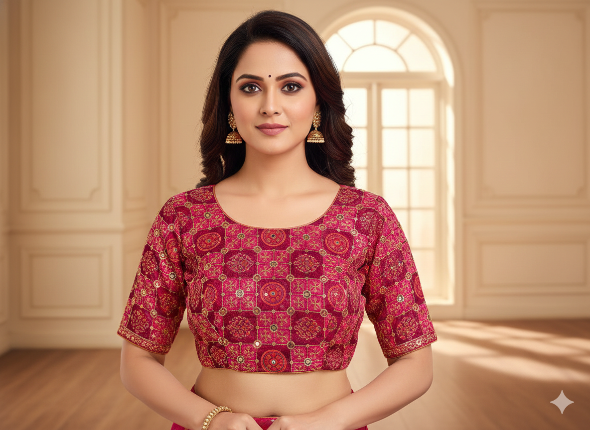 मैजेंटा ज्यामितीय कढ़ाई सेक्विन काम विस्कोस ऑर्गेना फैब्रिक