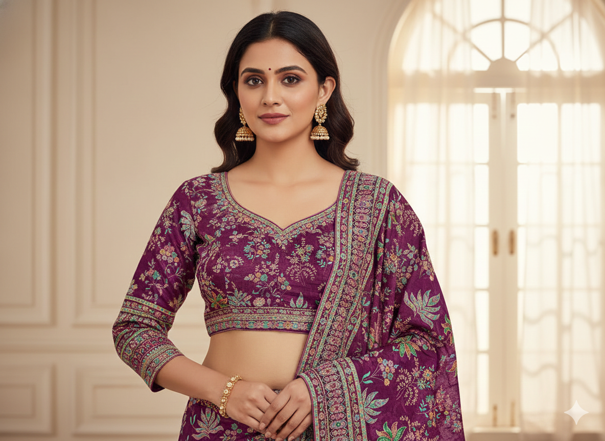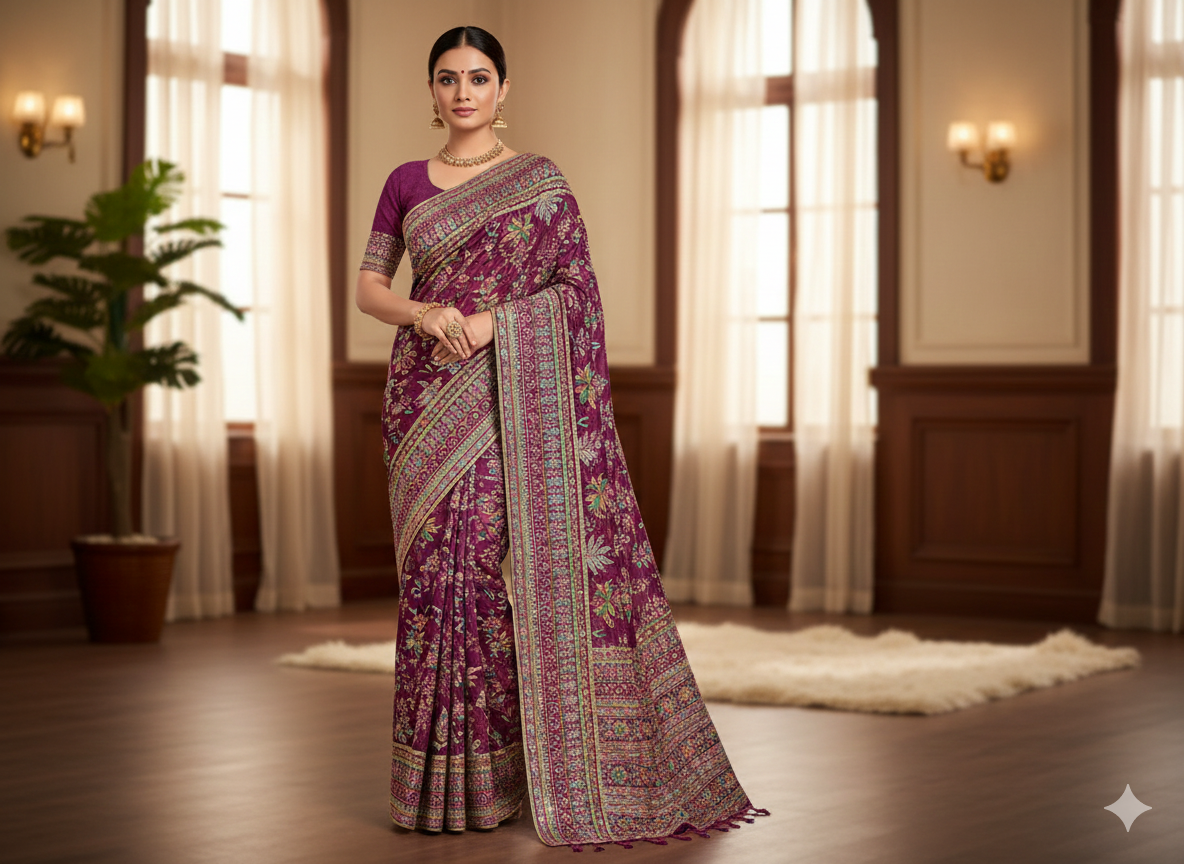 मैजेंटा गुलाबी पारंपरिक डिजिटल मुद्रित विस्कोस ऑर्गेना कपड़ा