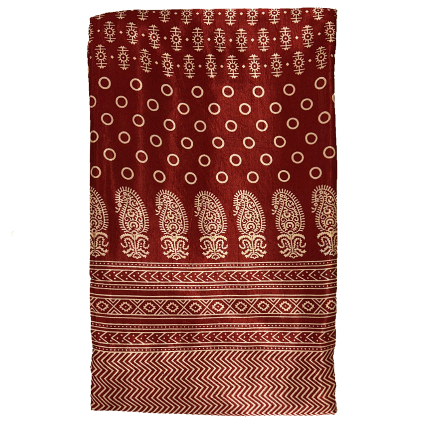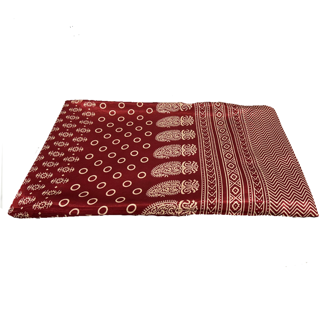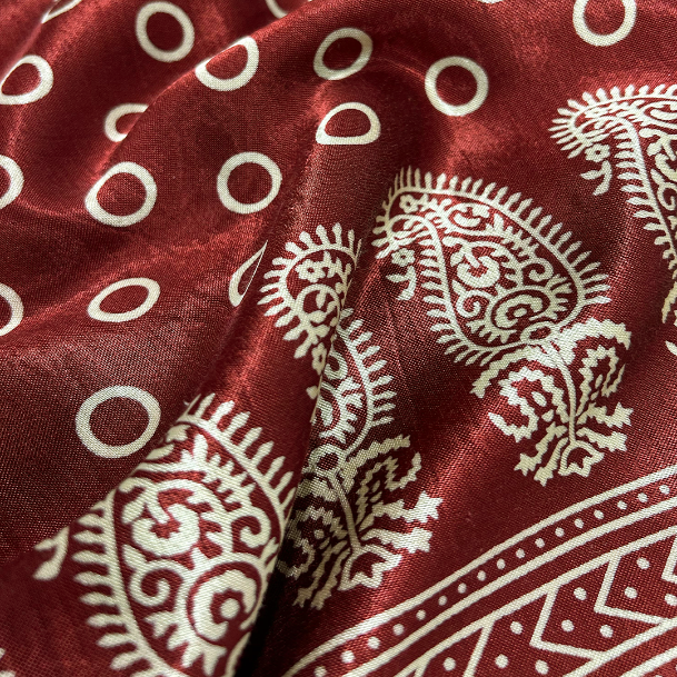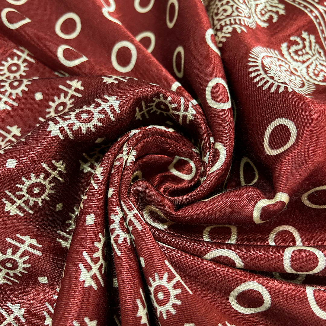मैरून पारंपरिक पटोला मुद्रित मशरू सिल्क कपड़ा