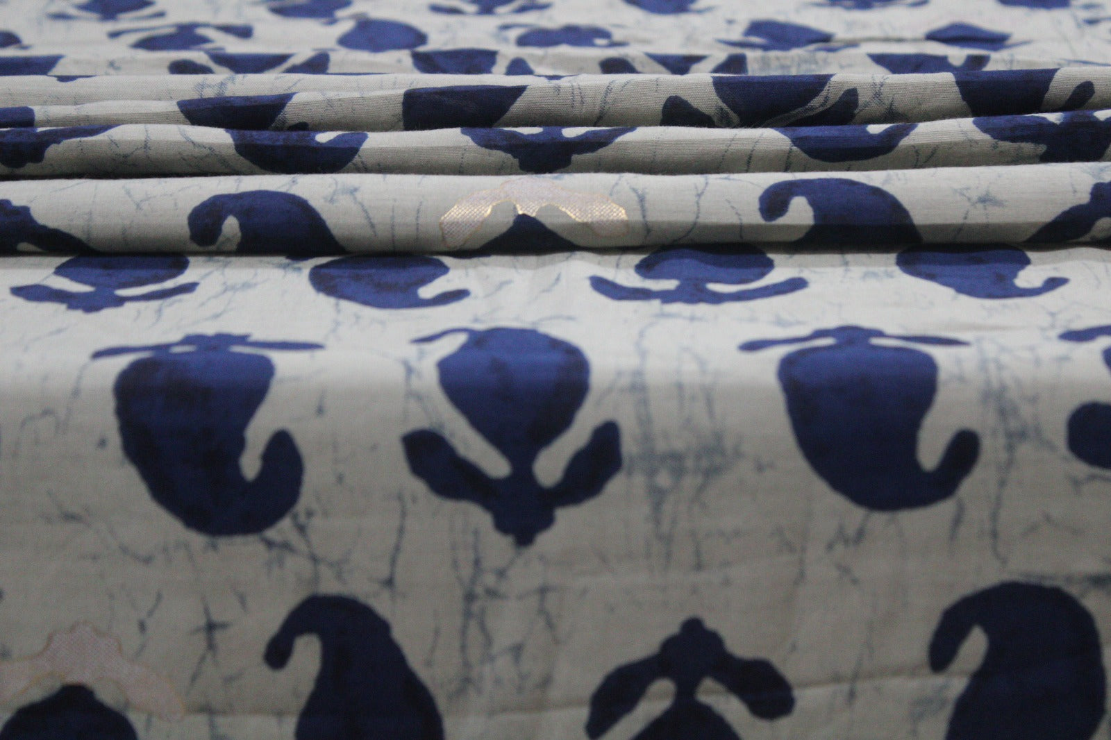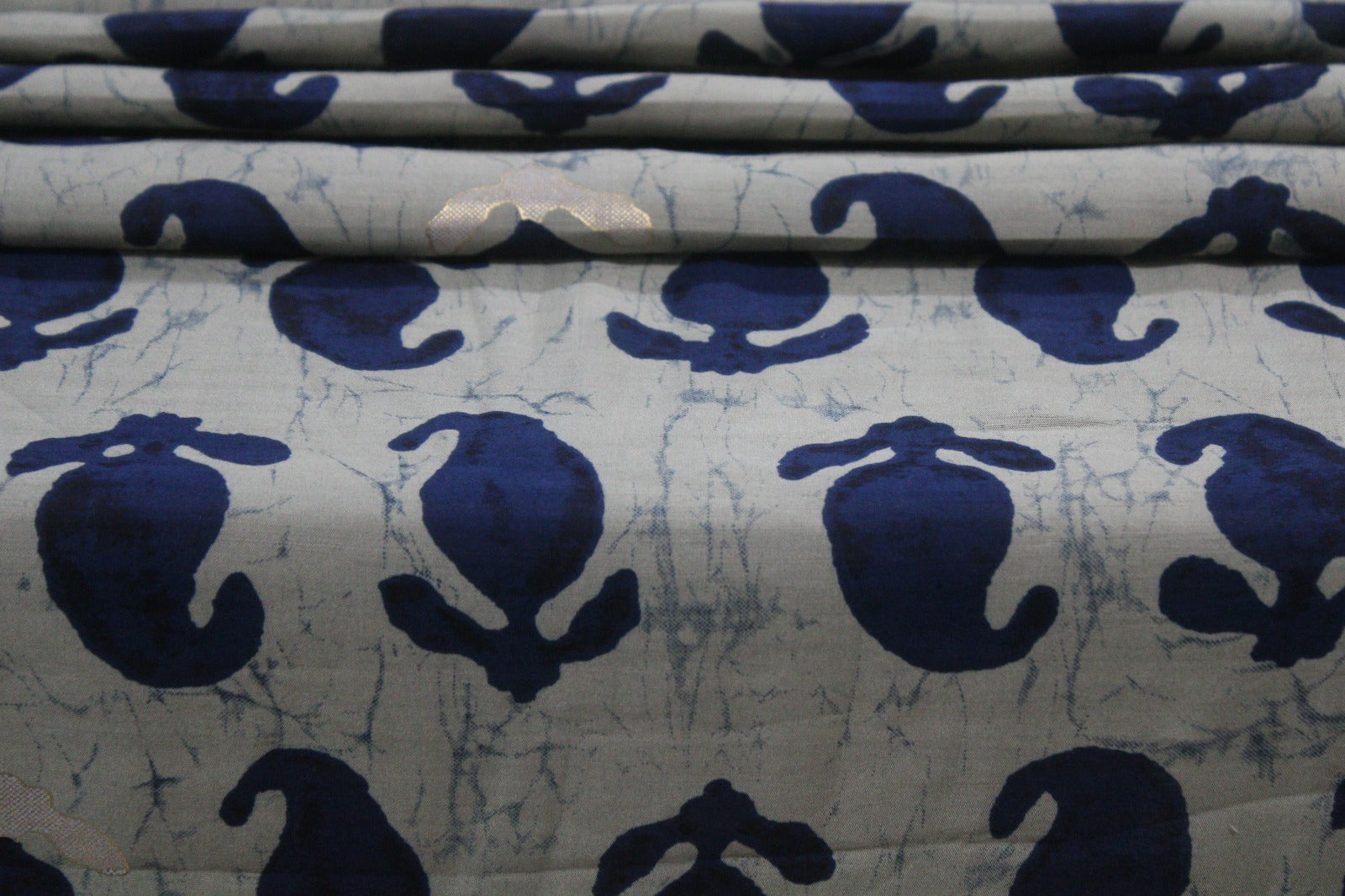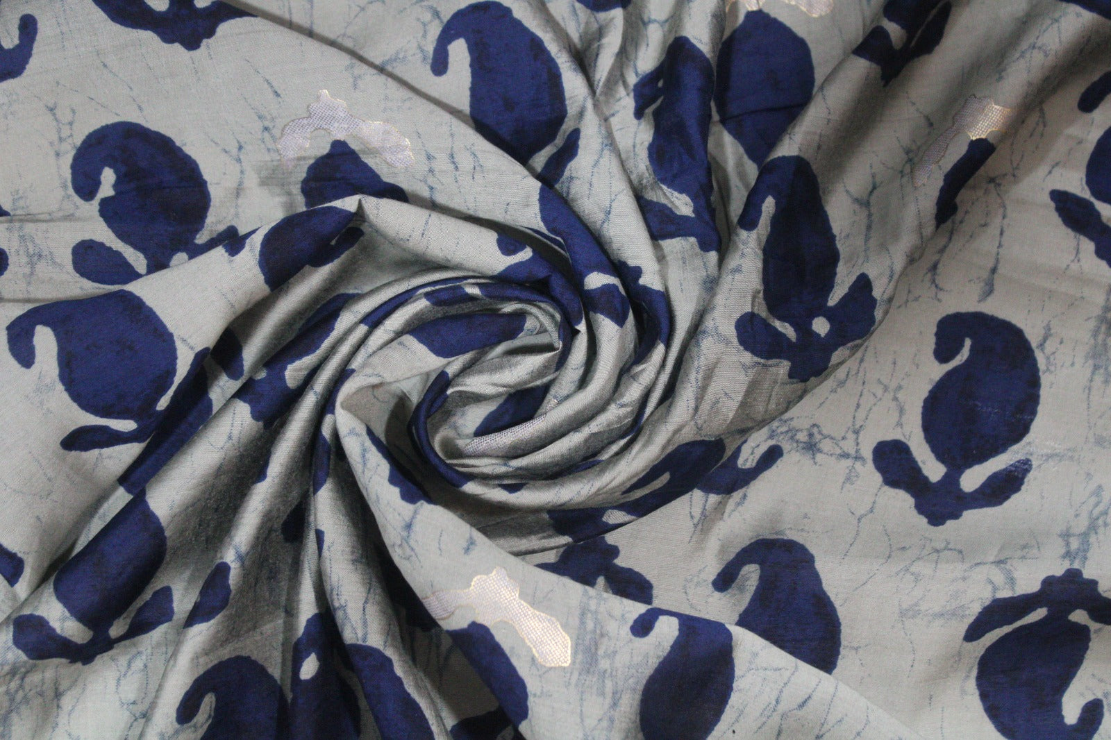नीला पैस्ले मुद्रित मलमल रेशम कपड़ा