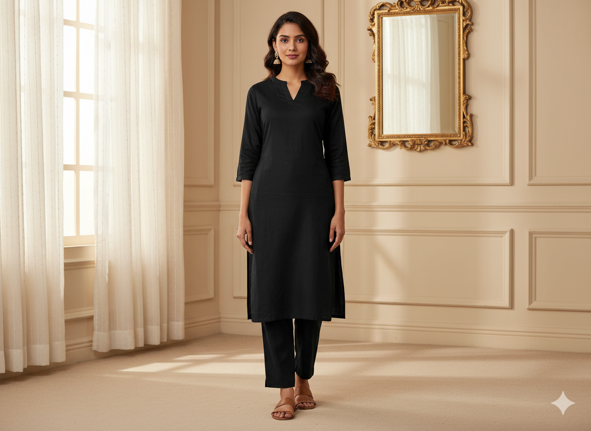 जेट ब्लैक प्लेन ग्लेज्ड कॉटन फ़ैब्रिक (थोक) @ ₹53 / Meter