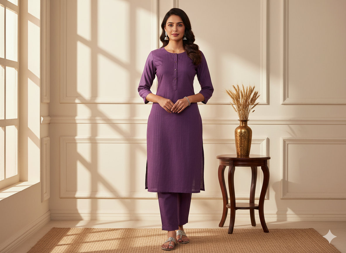 गहरा मैट बैंगनी सादा ग्लेज्ड कॉटन कपड़ा (थोक) @ ₹53 / Meter