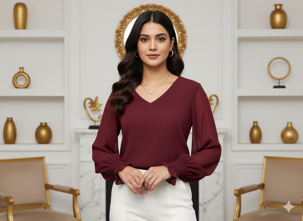 गहरा लाल सादा 60 ग्राम जॉर्जेट कपड़ा (थोक) @ ₹45 / Meter