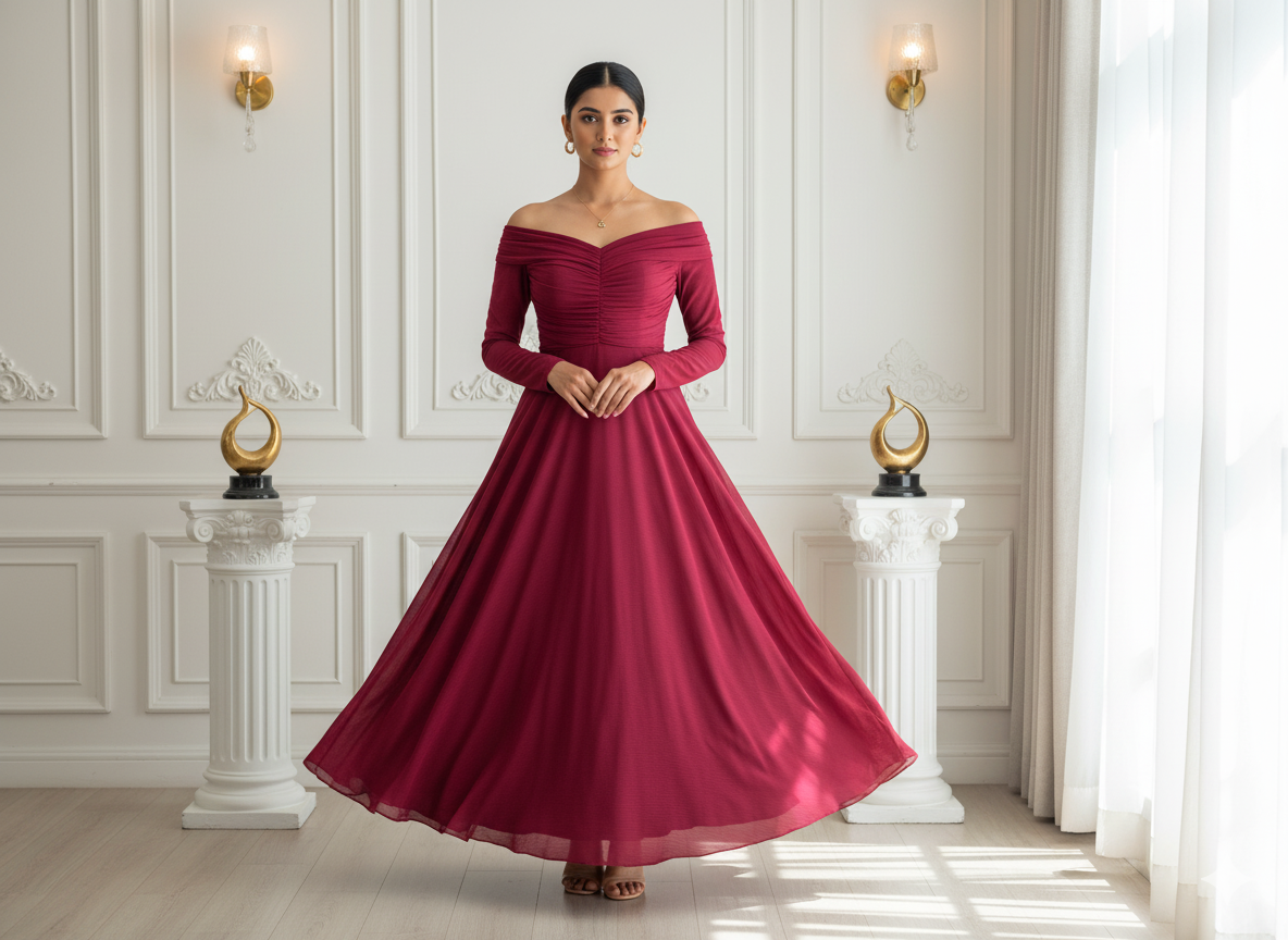 जॉर्जेट एक हल्का, पारदर्शी कपड़ा है जो अपनी बहती हुई ड्रेप और सुंदर बनावट के लिए बेशकीमती है। रेशम, पॉलिएस्टर या रेयान फाइबर से तैयार, यह थोड़ी झुर्रीदार सतह का दावा करता है, जो इसे एक सूक्ष्म, लहरदार प्रभाव देता है। यह शानदार कपड़ा अपनी बहुमुखी प्रतिभा के लिए फैशन में प्रिय है, जो खुद को बहने वाली ड्रेस, ब्लाउज और स्कार्फ के लिए खूबसूरती से उधार देता है। इसकी नाजुक लेकिन लचीली प्रकृति इसे औपचारिक पोशाक और दुल्हन के पहनावे के लिए एक लोकप्रिय विकल्प बनाती है, जहाँ यह अलौकिक रोमांस का स्पर्श जोड़ता है। जॉर्जेट का नरम, हवादार एहसास और सुंदर चाल इसे ऐसे डिजाइनरों के बीच पसंदीदा बनाती है जो ऐसे परिधान बनाना चाहते हैं जो सहज परिष्कार और कालातीत आकर्षण को बढ़ाते हैं।