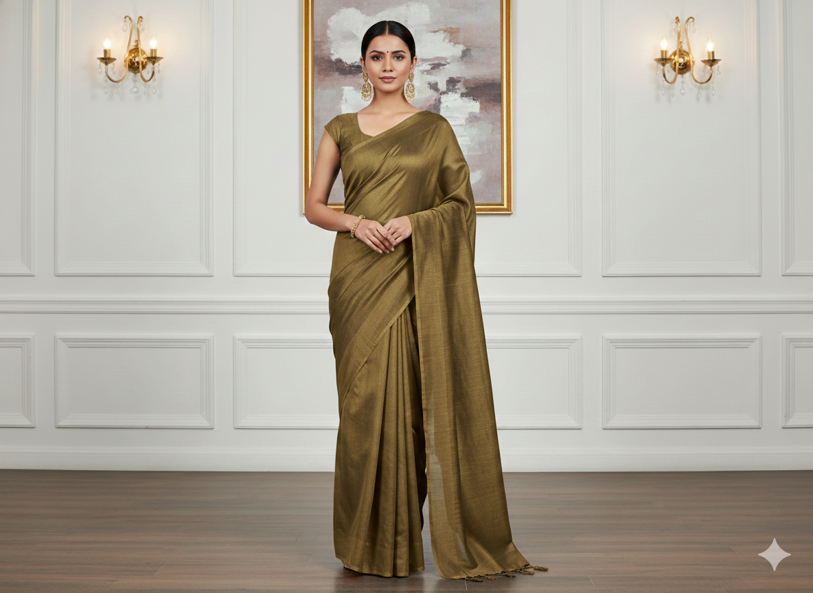 Khaki Brown Plain Bangalore Raw Silk Fabric (Wholesale) @ ₹55 / Meter
