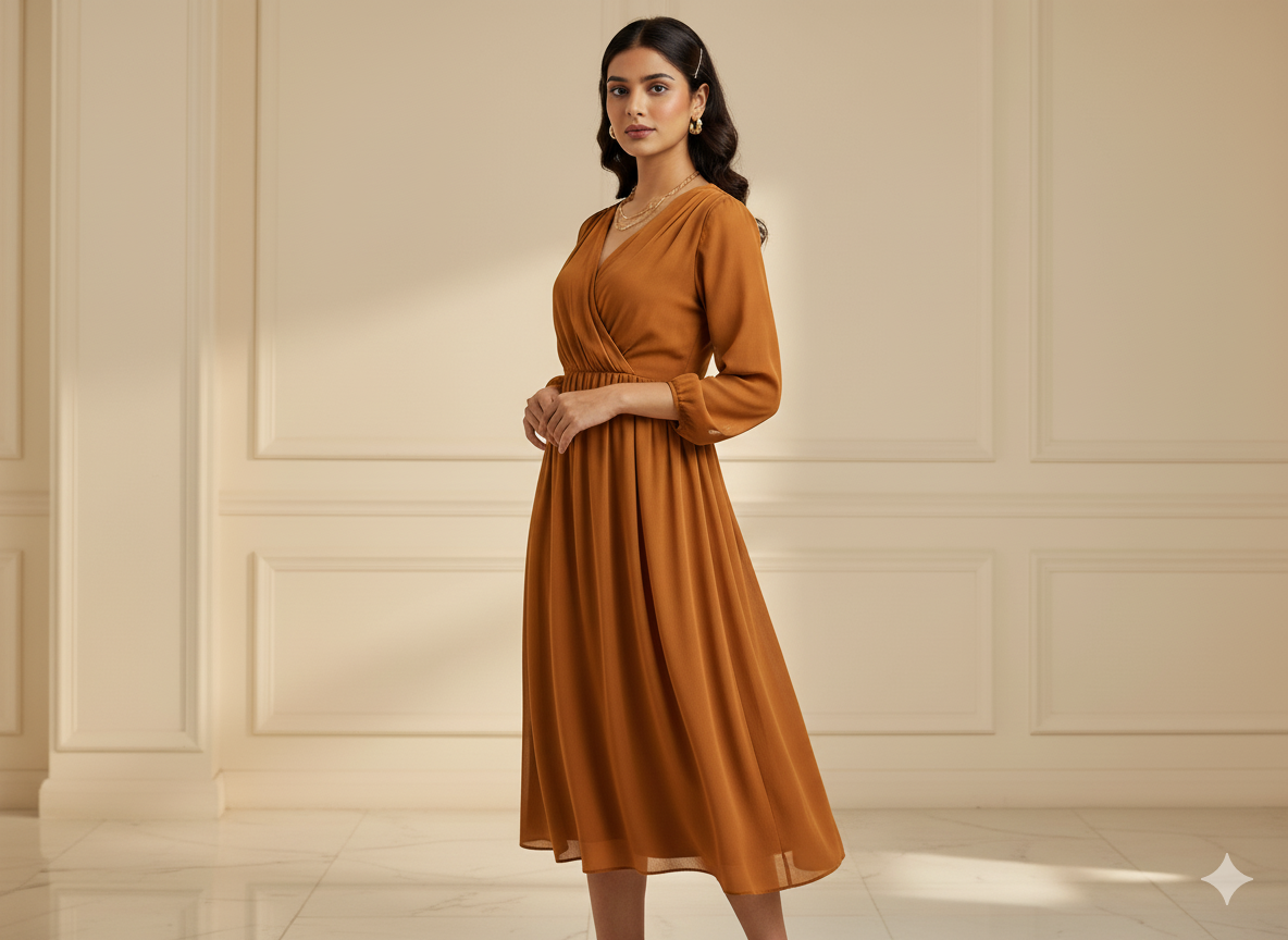 जॉर्जेट एक हल्का, पारदर्शी कपड़ा है जो अपनी बहती हुई ड्रेप और सुंदर बनावट के लिए बेशकीमती है। रेशम, पॉलिएस्टर या रेयान फाइबर से तैयार, यह थोड़ी झुर्रीदार सतह का दावा करता है, जो इसे एक सूक्ष्म, लहरदार प्रभाव देता है। यह शानदार कपड़ा अपनी बहुमुखी प्रतिभा के लिए फैशन में प्रिय है, जो खुद को बहने वाली ड्रेस, ब्लाउज और स्कार्फ के लिए खूबसूरती से उधार देता है। इसकी नाजुक लेकिन लचीली प्रकृति इसे औपचारिक पोशाक और दुल्हन के पहनावे के लिए एक लोकप्रिय विकल्प बनाती है, जहाँ यह अलौकिक रोमांस का स्पर्श जोड़ता है। जॉर्जेट का नरम, हवादार एहसास और सुंदर चाल इसे ऐसे डिजाइनरों के बीच पसंदीदा बनाती है जो ऐसे परिधान बनाना चाहते हैं जो सहज परिष्कार और कालातीत आकर्षण को बढ़ाते हैं।