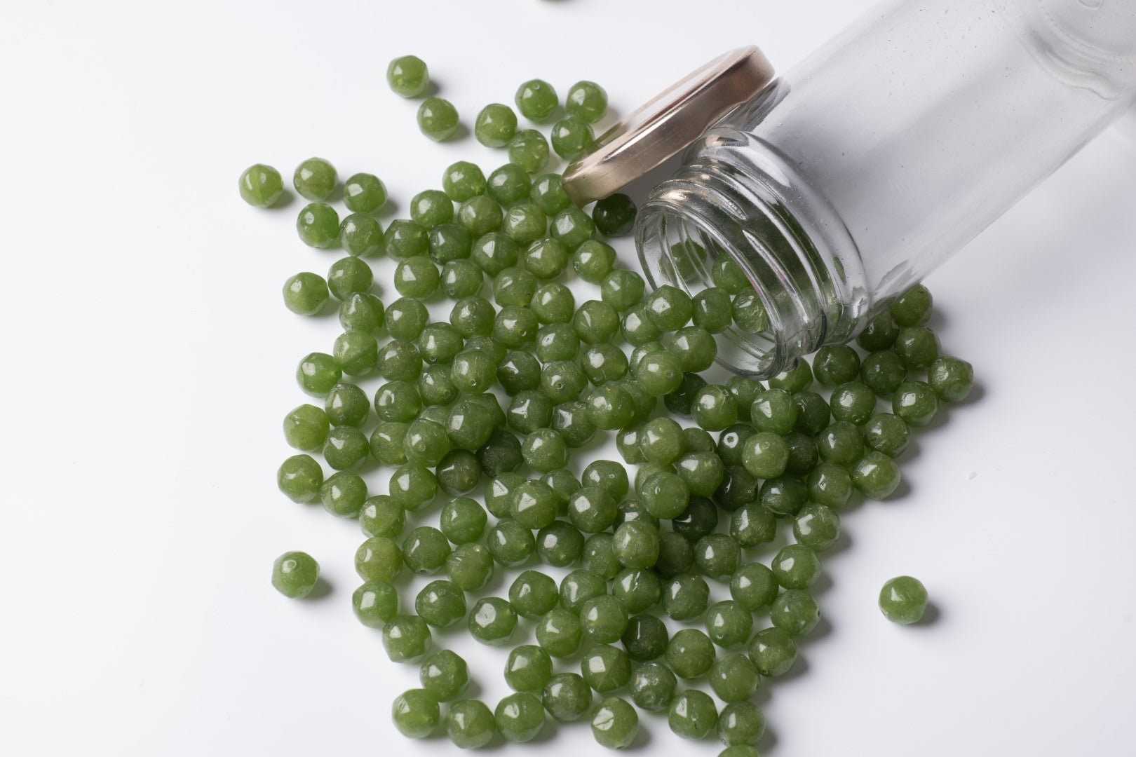 Pressed Green Round Czech Glass Beads