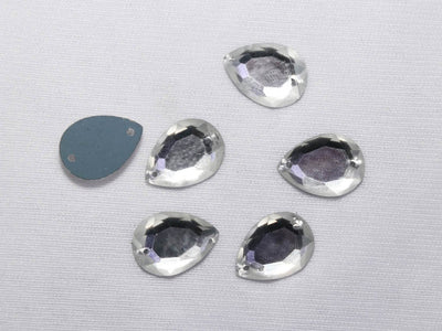 सिल्वर 2 होल ड्रॉप ग्लास स्टोन - 18x13 मिमी