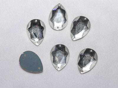 सिल्वर 2 होल ड्रॉप ग्लास स्टोन - 18x25 मिमी