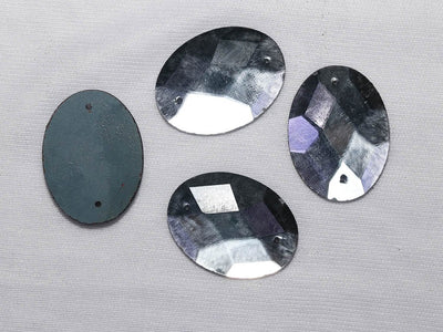 सिल्वर 2 होल ओवल ग्लास स्टोन - 24x32 मिमी